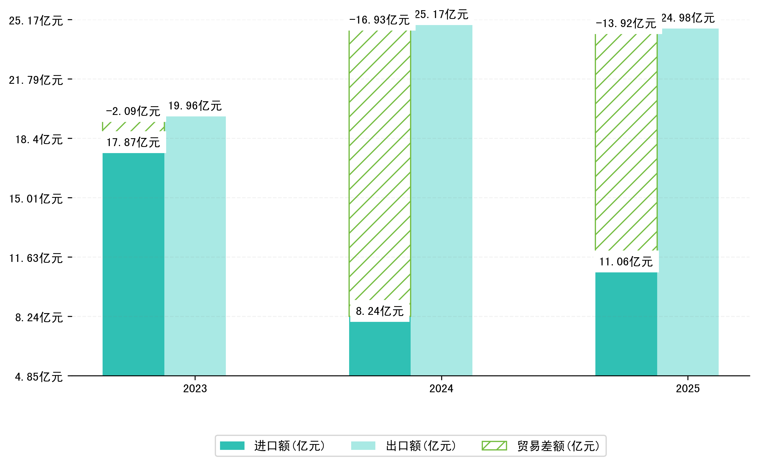 以人民币计,2025年1-7月绥化市贸易差额为13,9196,2619万元(贸易顺差),相比上年同期减少了3,0148,0429万元,同比减少-17.8%。
