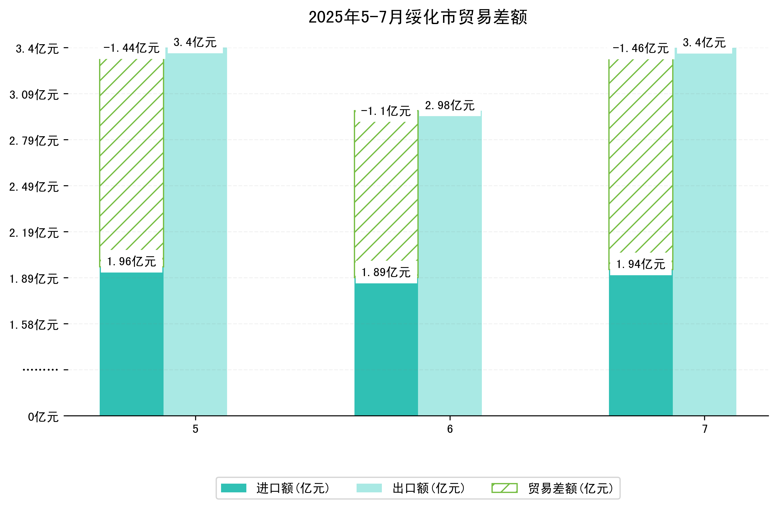 2025年7月绥化市进出口总额及进出口差额统计分析