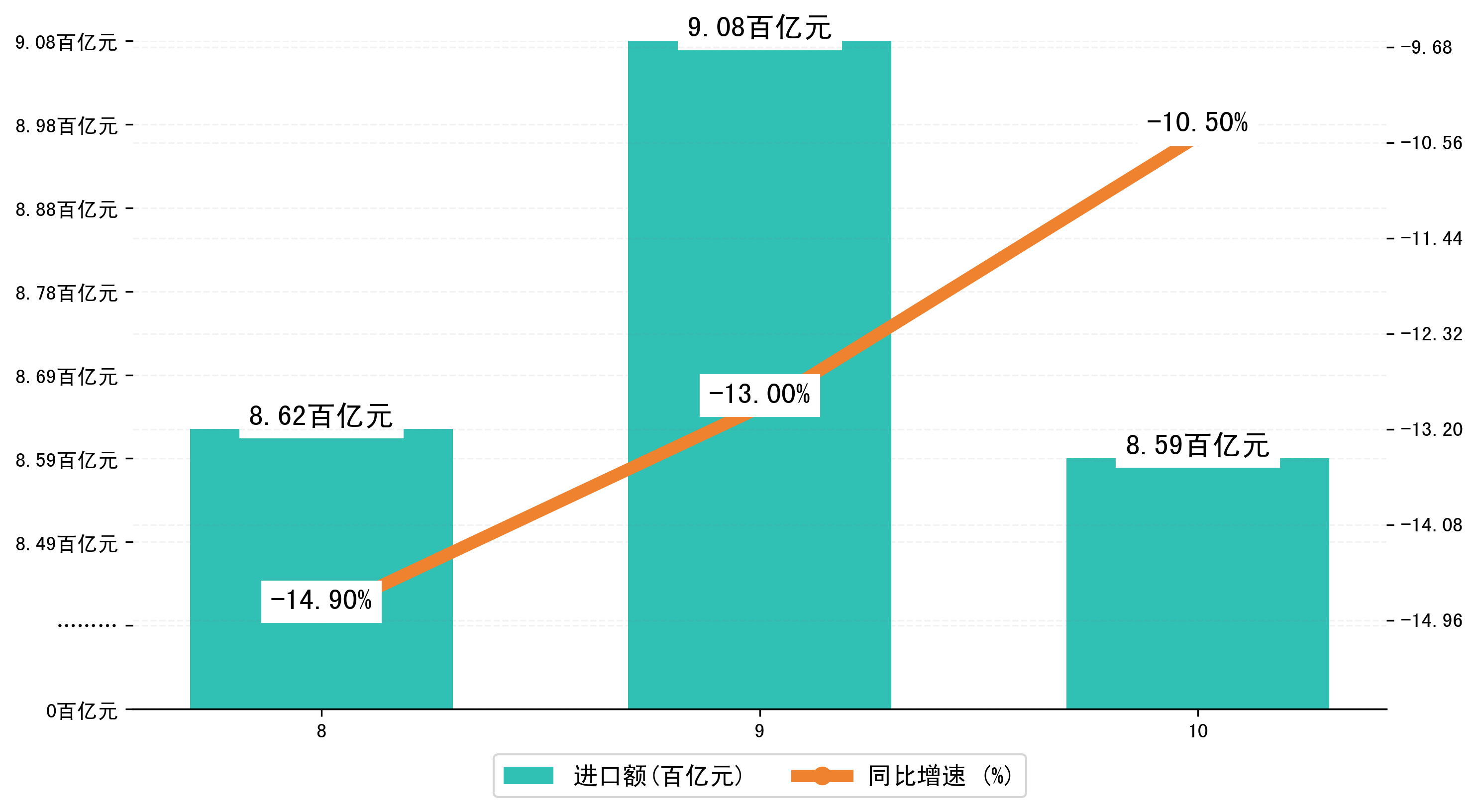 以人民币计,2023年10月苏州市进口额为858,8238.7932万元,相比上月减少了48,8510.7193万元;相比上年同期增加了117,7836.5547万元,同比减少了-10.50%。