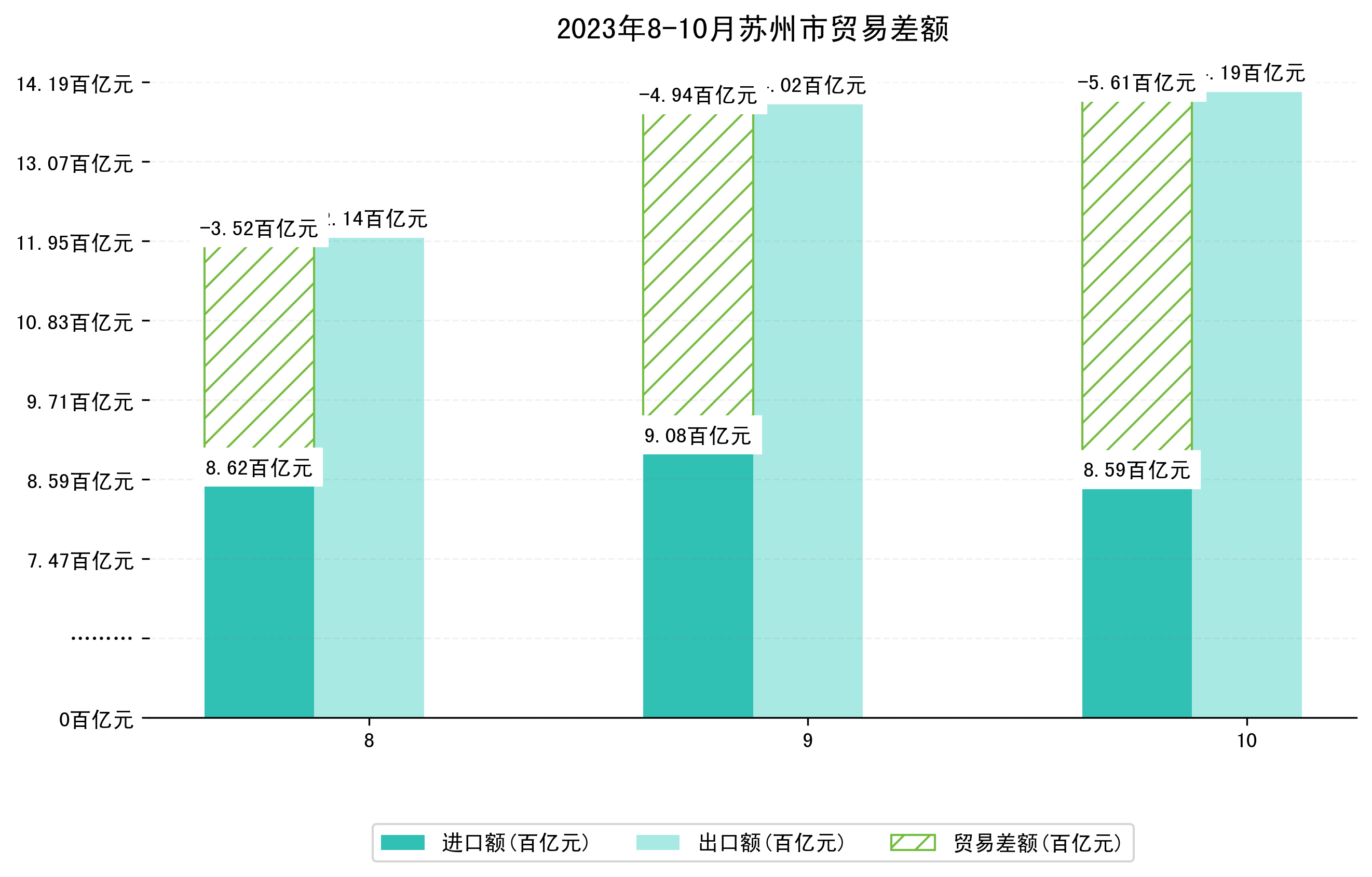 2023年10月苏州市进出口总额及进出口差额统计分析