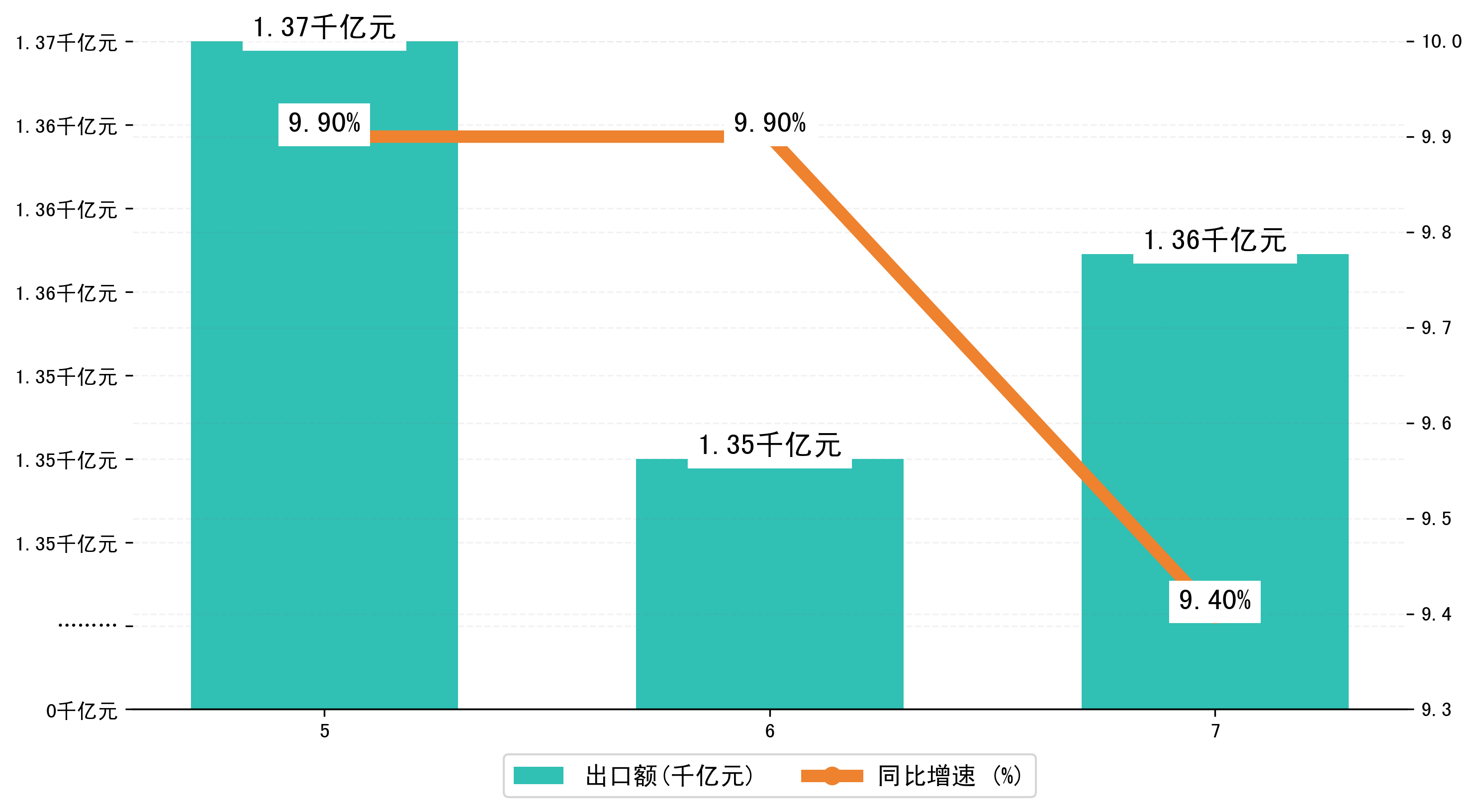 以人民币计,2024年7月苏州市出口额为1356,7234.8531万元,相比上月增加了7,9939.6943万元;相比上年同期增加了88,2491.1808万元,同比增加了9.40%。