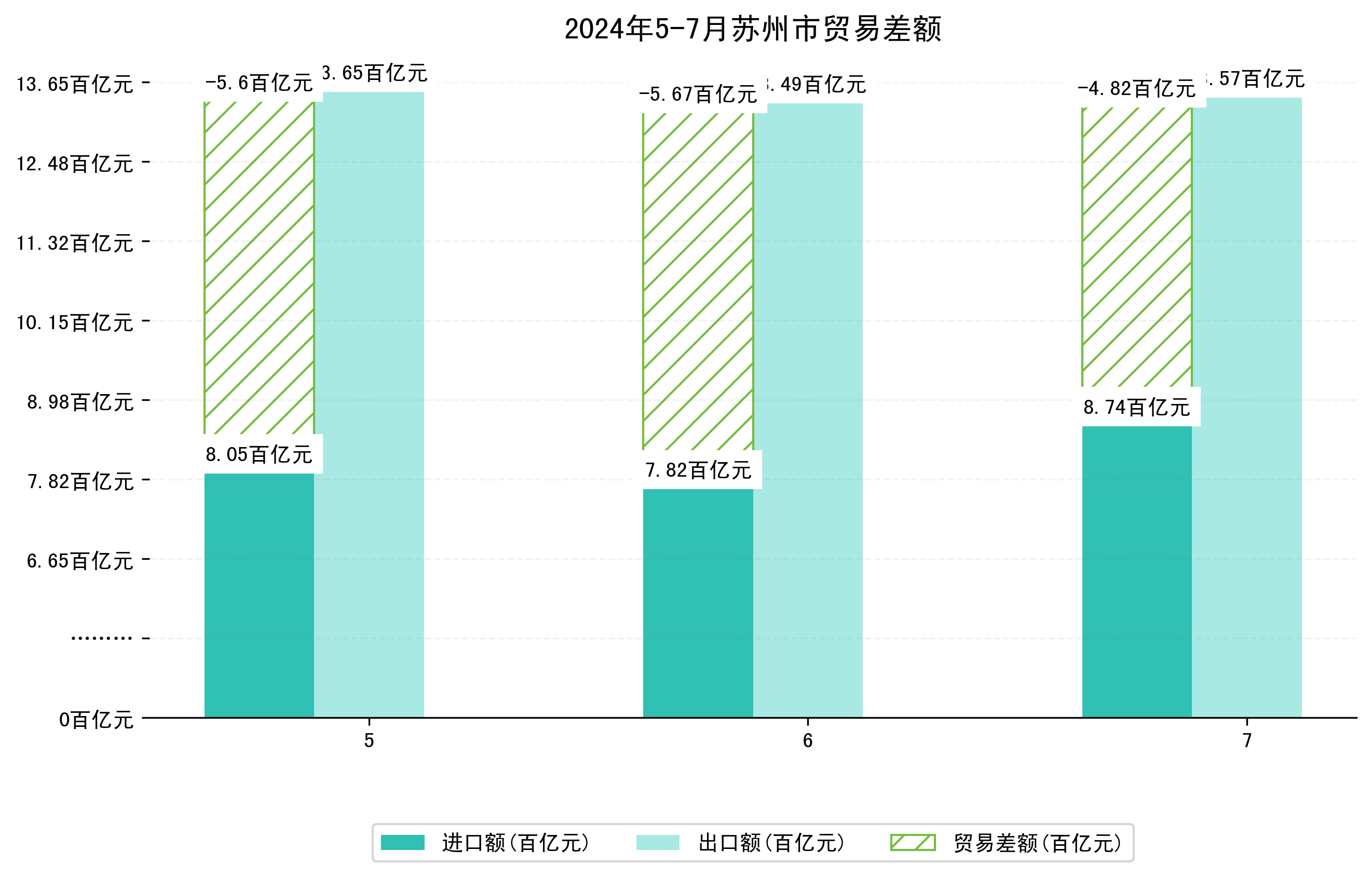 2024年7月苏州市进出口总额及进出口差额统计分析