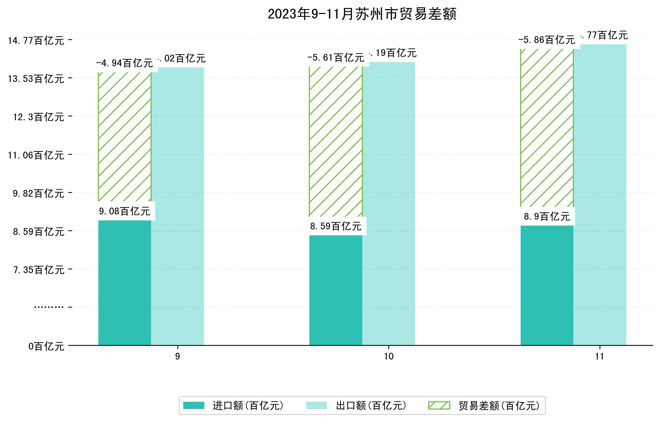 2023年11月苏州市进出口总额及进出口差额统计分析