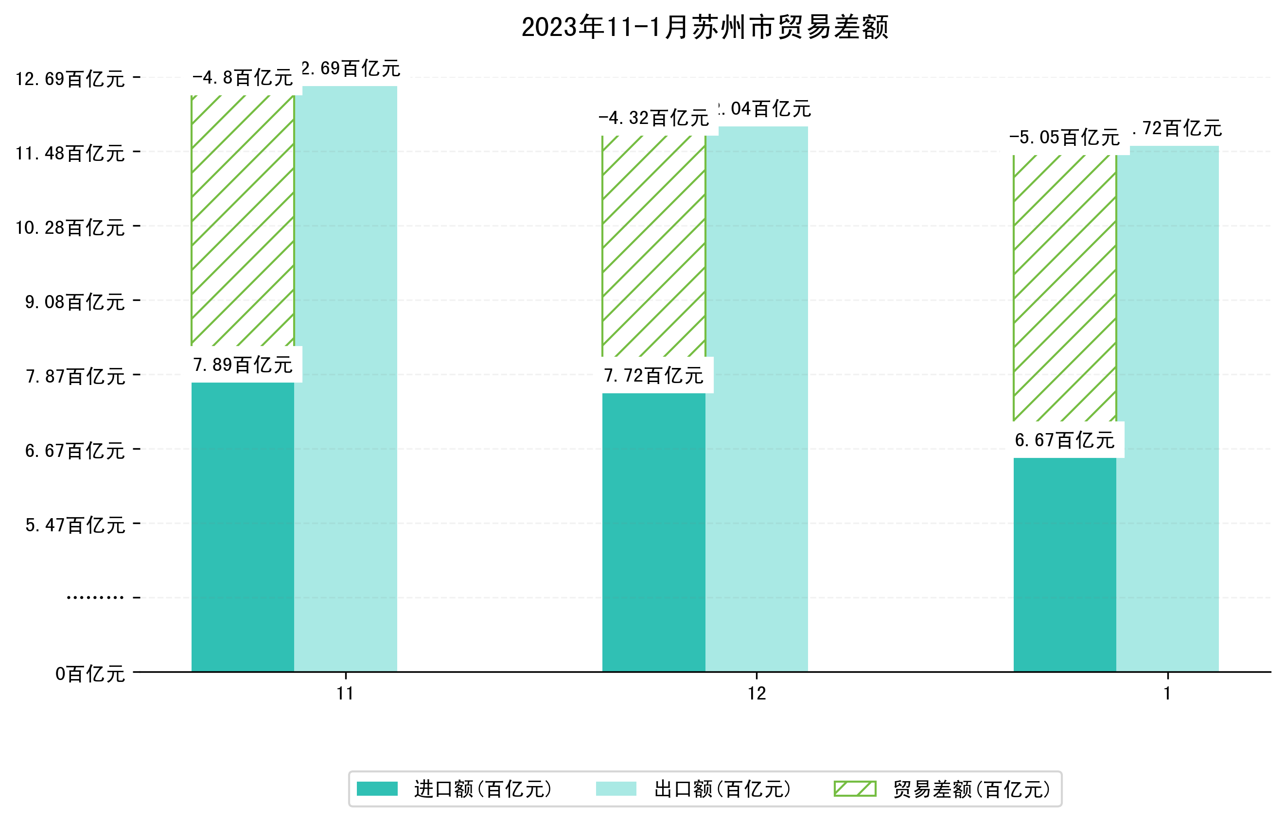 (图四:2023年11-1月苏州市贸易差额)