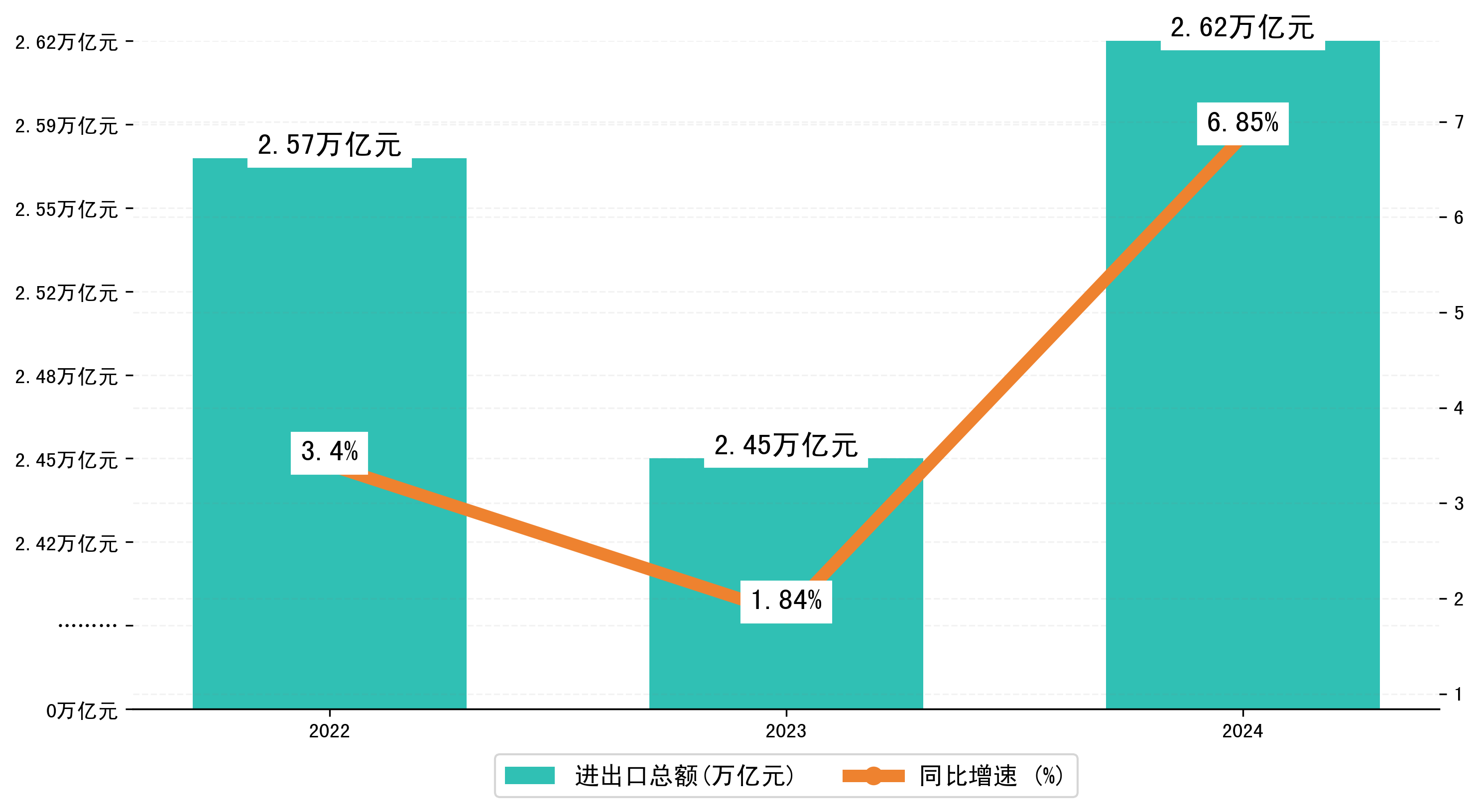 以人民币计,2024年1-12月苏州市进出口总额为2,6193,1090.8247万元,相比上年同期增加了1679,0131.2384万元,同比增加了6.80%。