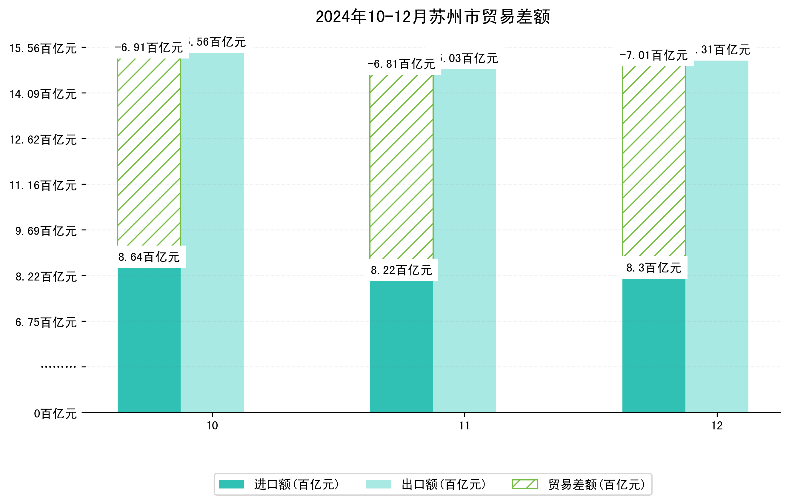 2024年12月苏州市进出口总额及进出口差额统计分析