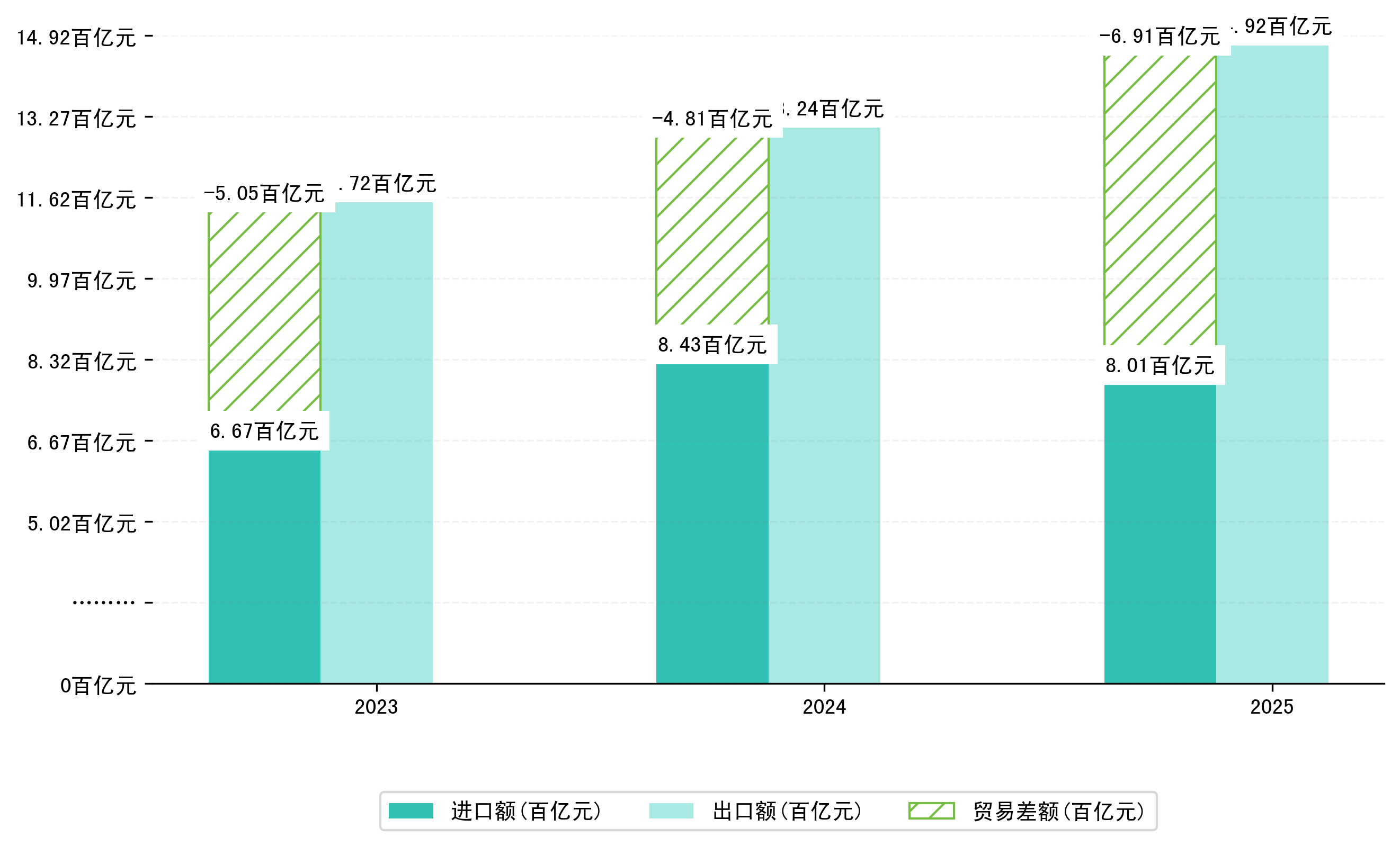 以人民币计,2025年1月苏州市贸易差额为690,9371,6040万元(贸易顺差),相比上月减少了9,6357,2924万元,即1,4265,8687万美元;相比上年同期增加了209,4593,6961万元,同比增加43.5%。
