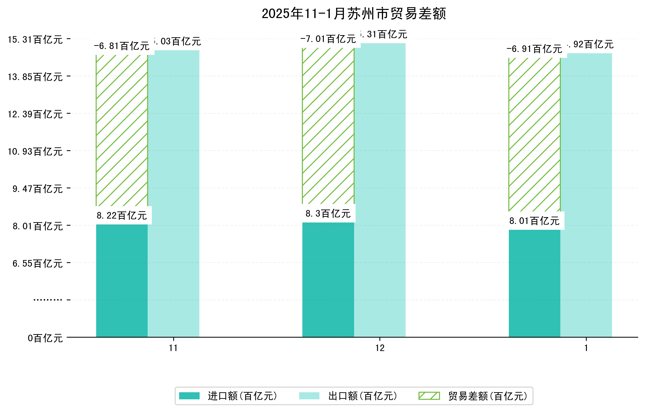2025年1月苏州市进出口总额及进出口差额统计分析