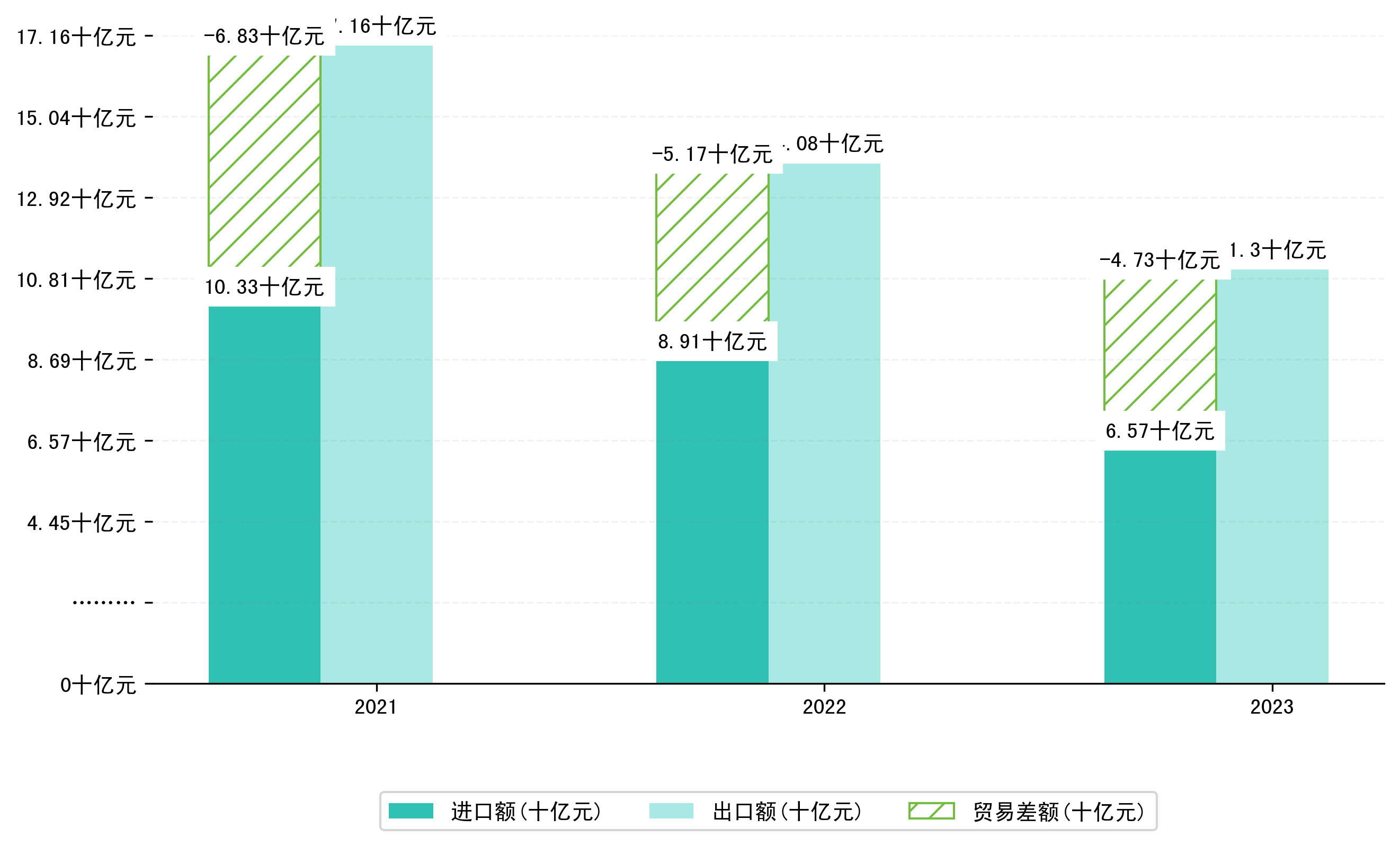 以人民币计,2023年2月太原市贸易差额为11,3815,8003万元(贸易顺差),相比上月减少了24,5451,0305万元,即3,4693,2662万美元;相比上年同期减少了17,5149,9311万元,同比减少-60.61%。