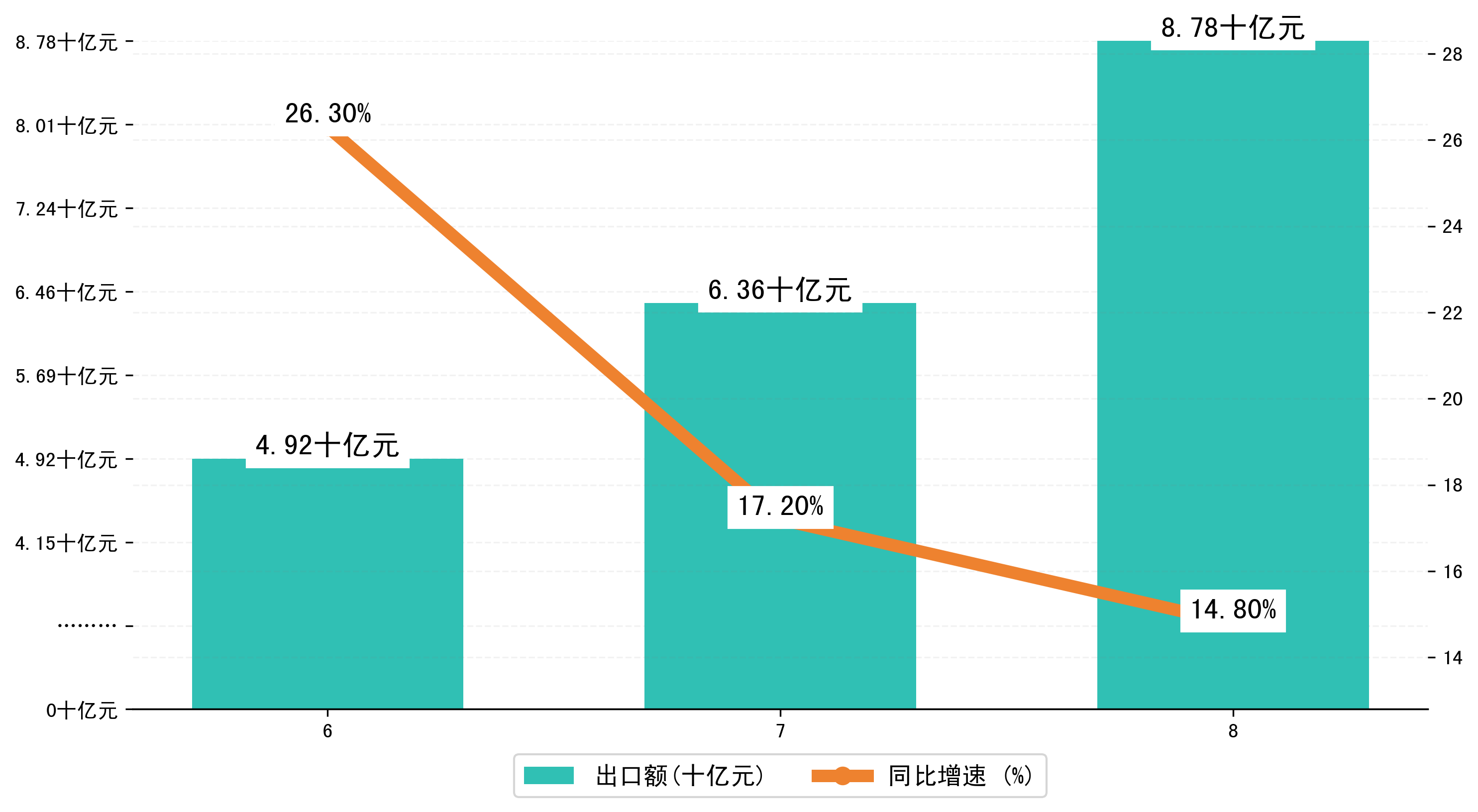 (图一:2024年6-8月太原市进出口总额)