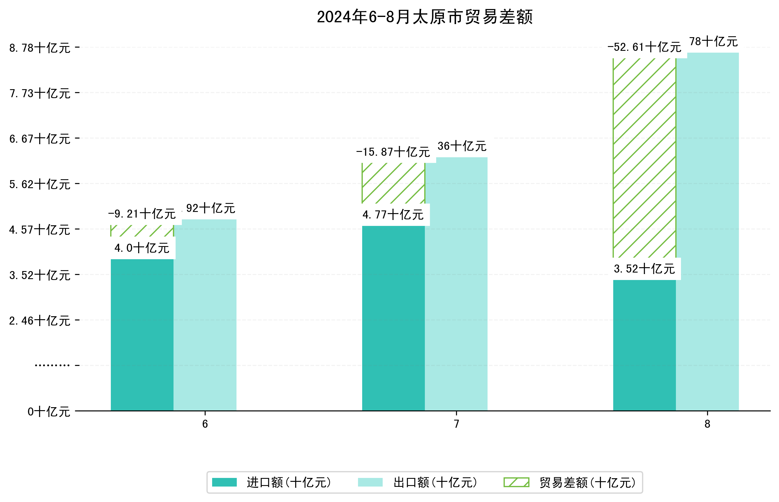 (图四:2024年6-8月太原市贸易差额)