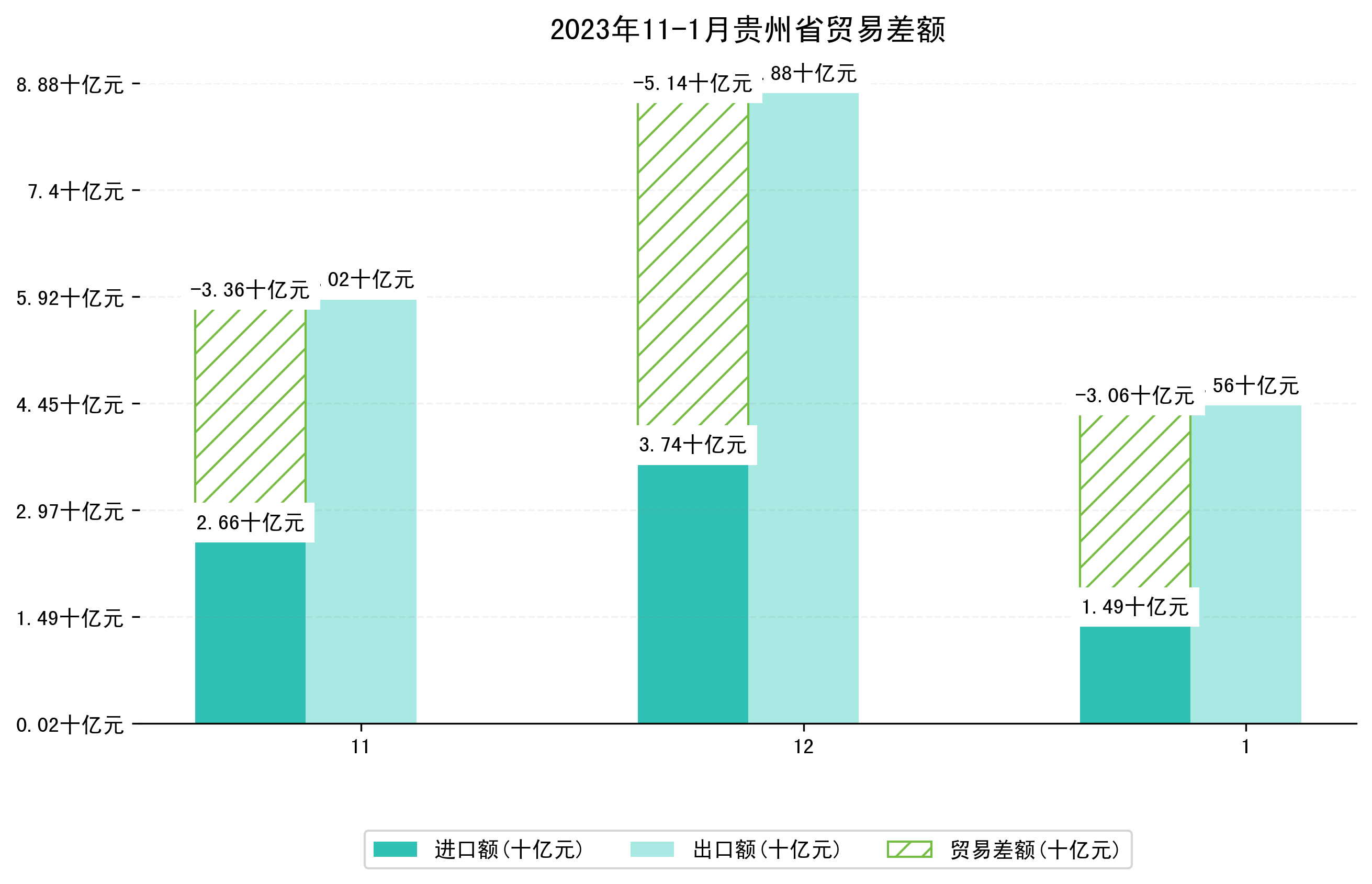 2023年1月贵州省进出口总额及进出口差额统计分析