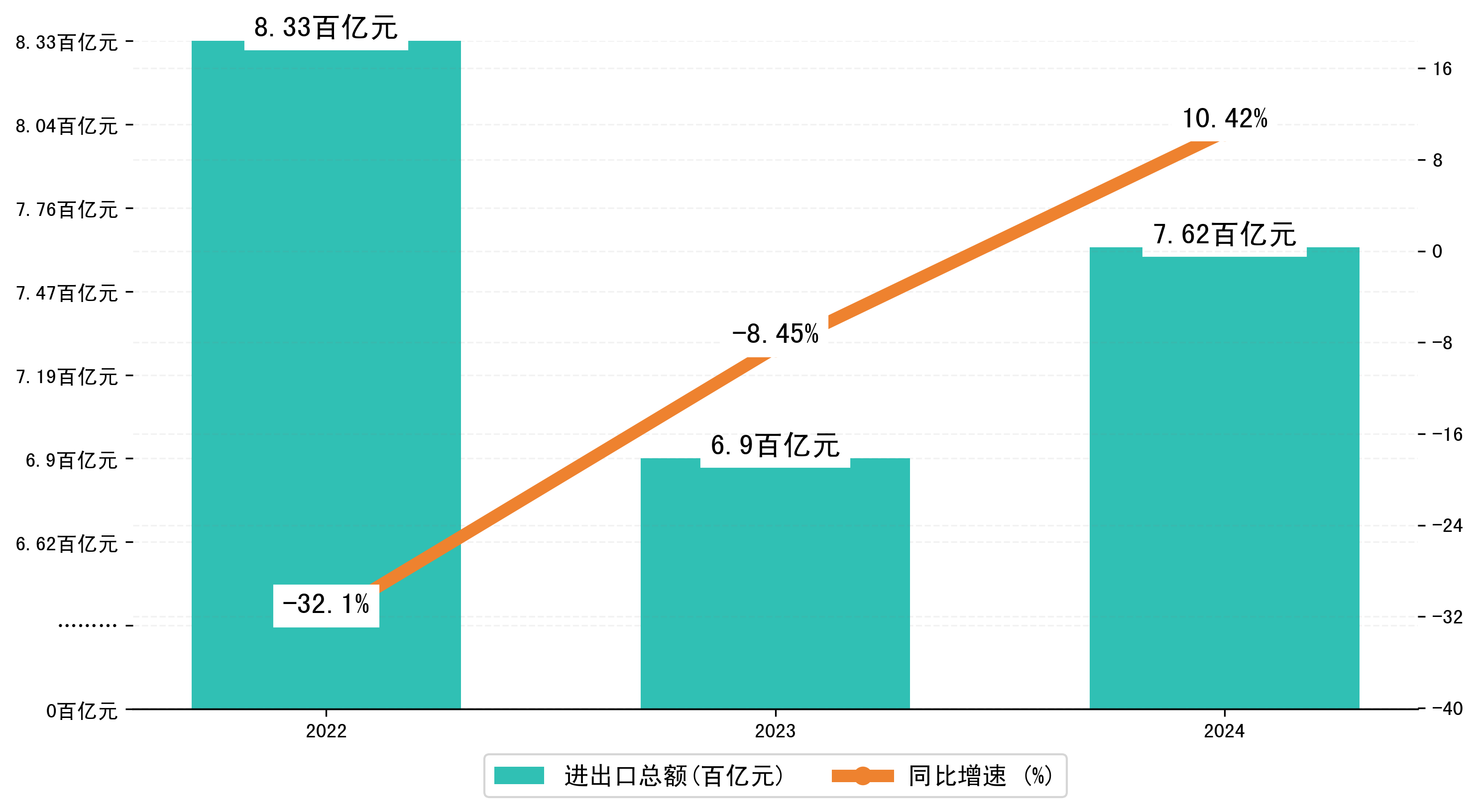 以人民币计,2024年1-7月太原市进出口总额为762,3933.8365万元,相比上年同期增加了71,9343.5826万元,同比增加了11.00%。