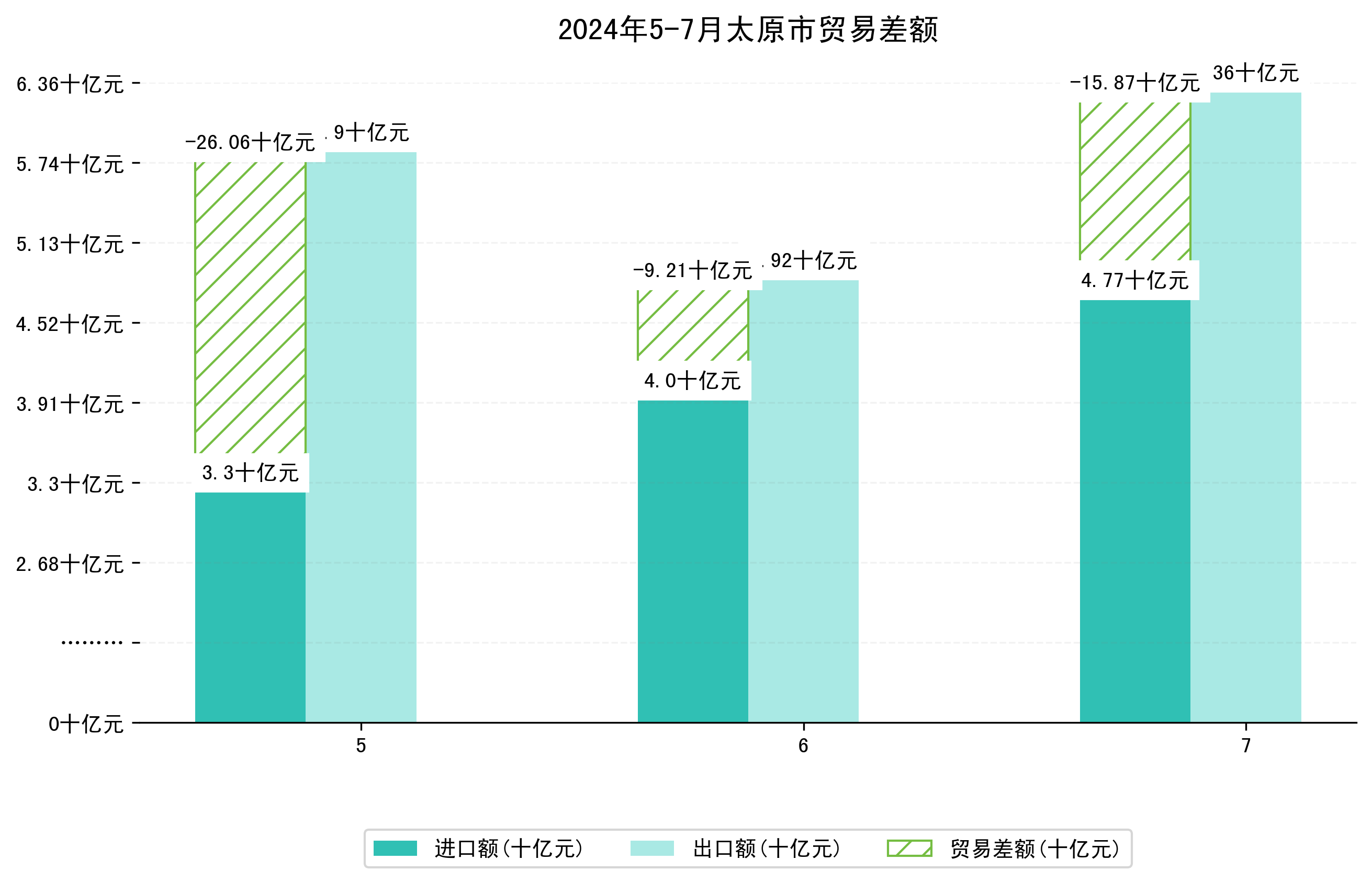 一、2024年7月太原市单月出口总额及进出口差额统计分析