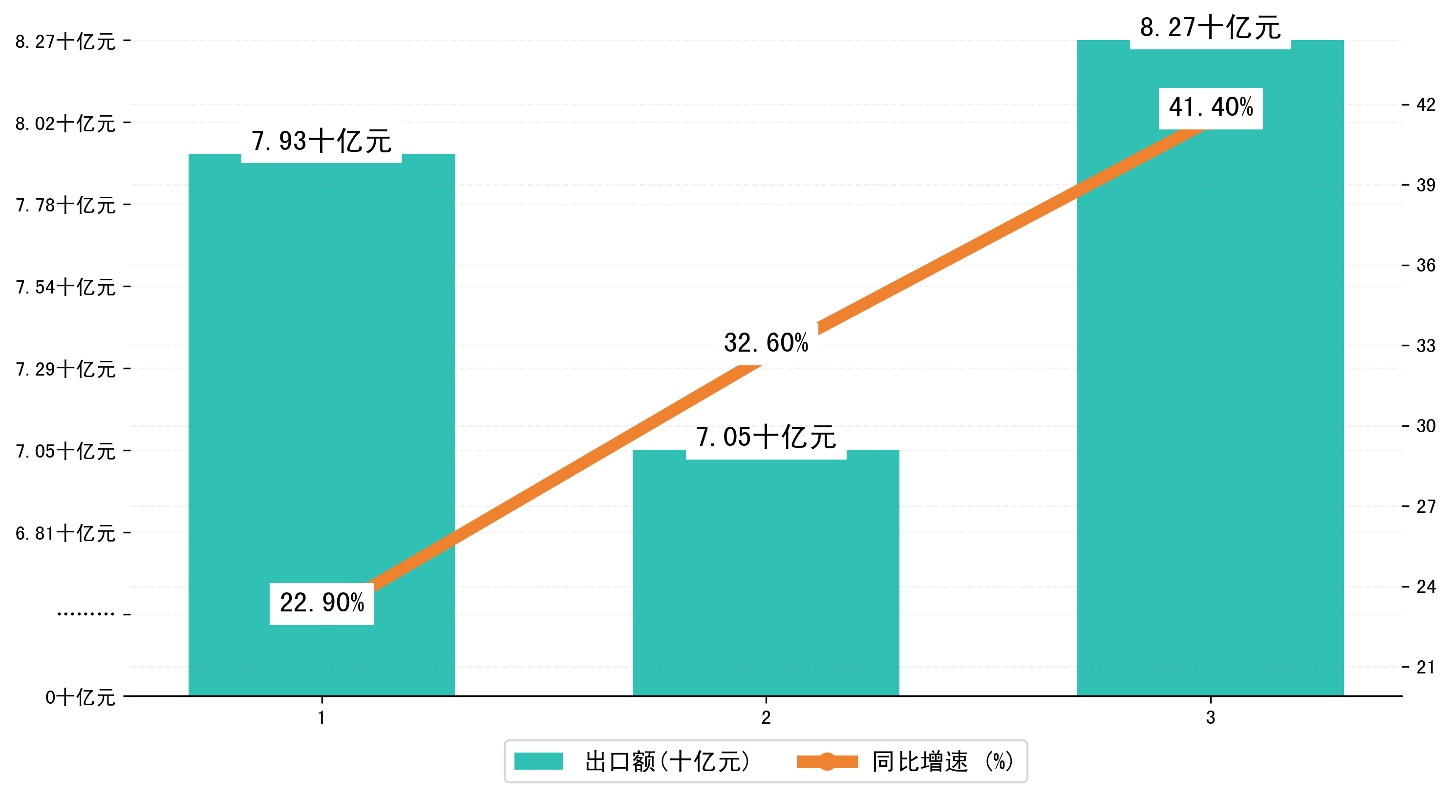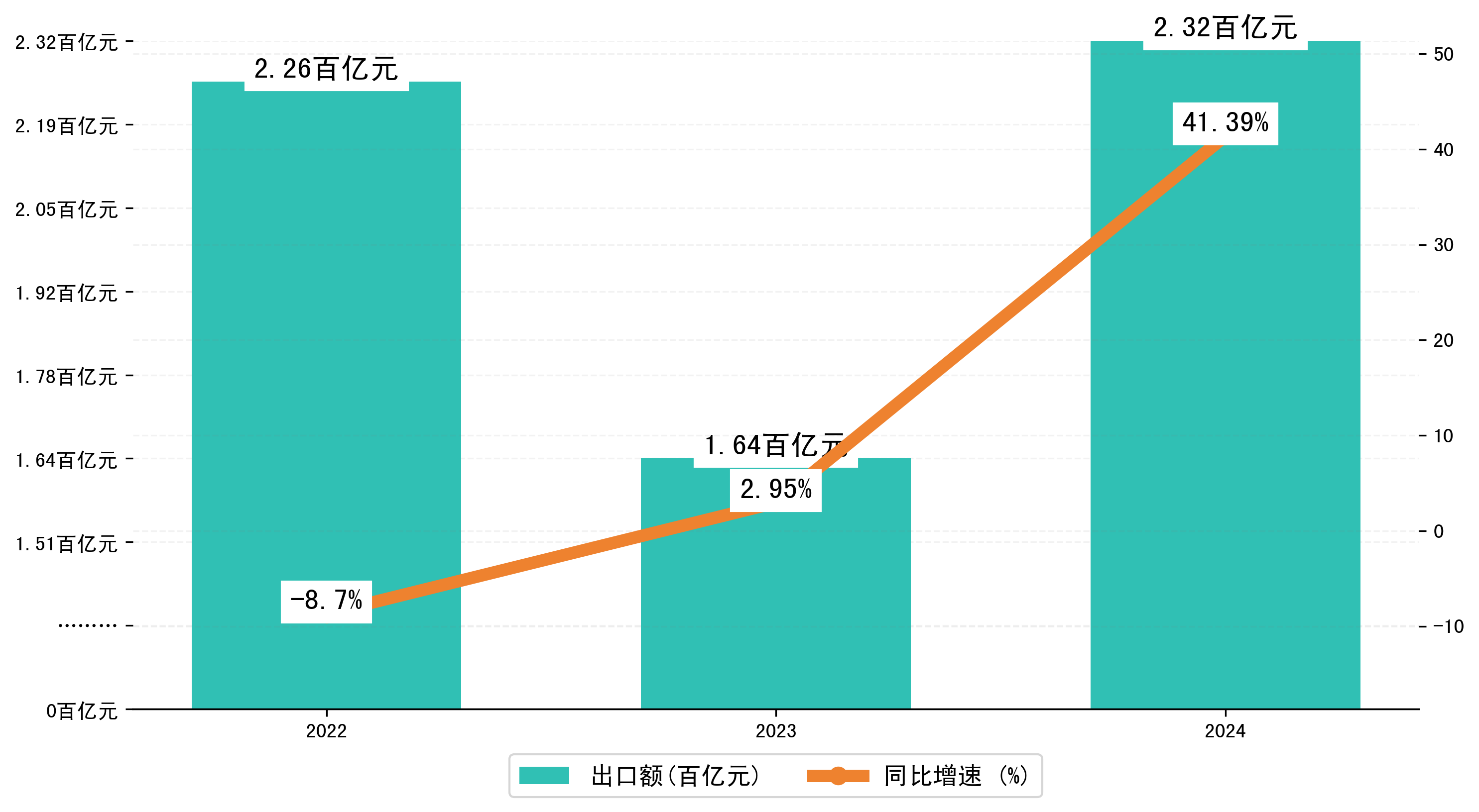 以美元计,2024年1-3月太原市出口额为32,7098.8219万美元,相比上年同期增加了8,7623.9306万美元,同比增加36.60%。
