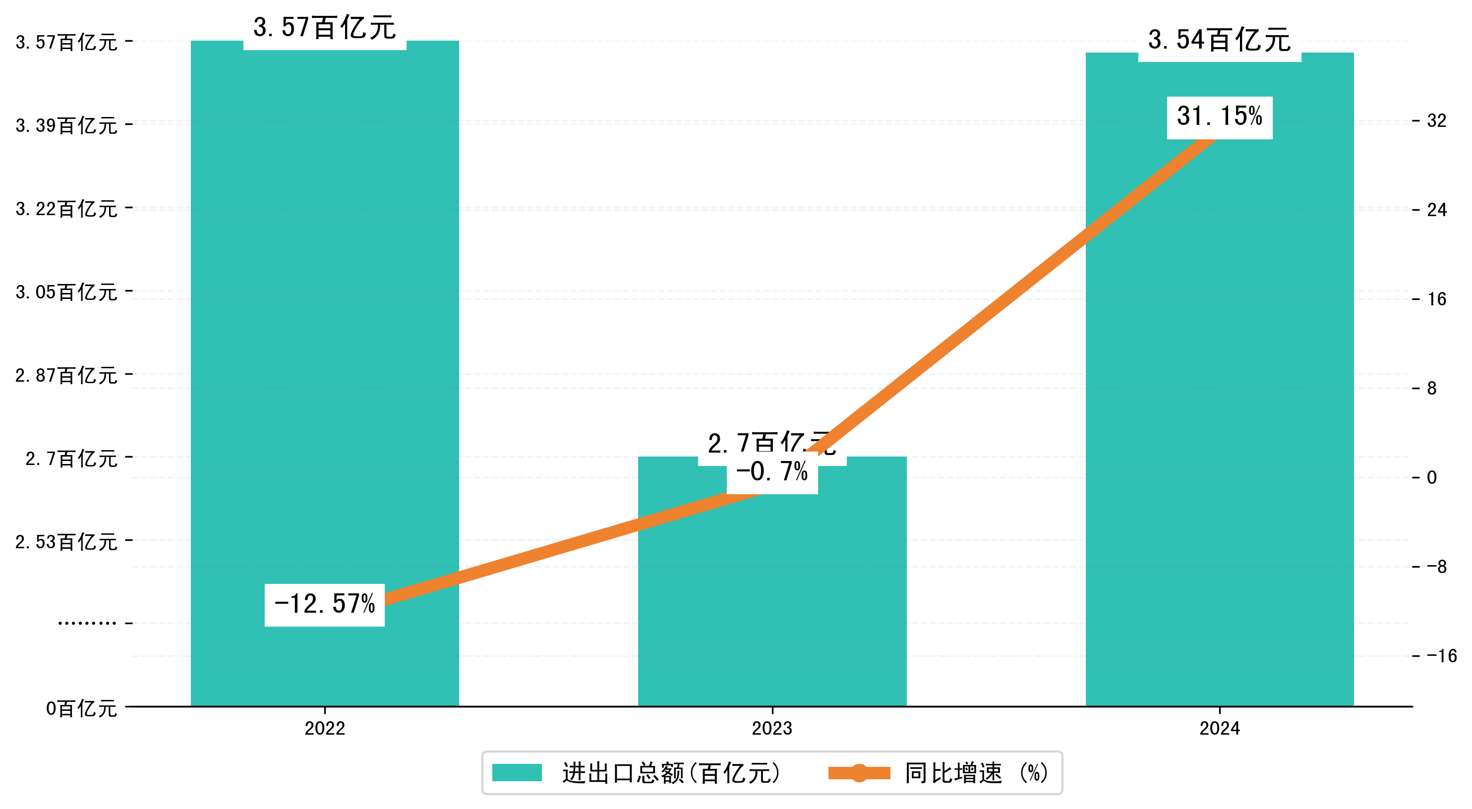 以人民币计,2024年1-3月太原市进出口总额为354,2991.0939万元,相比上年同期增加了84,1589.7287万元,同比增加了31.90%。