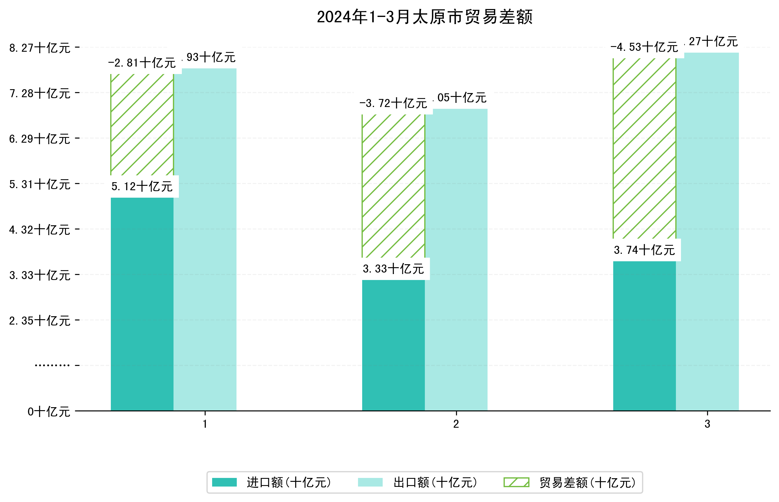 以美元计,2024年1-3月太原市贸易差额为15,5520,3648万美元(贸易顺差),相比上年同期增加了7,0586,1437万美元,同比增加83.11%。