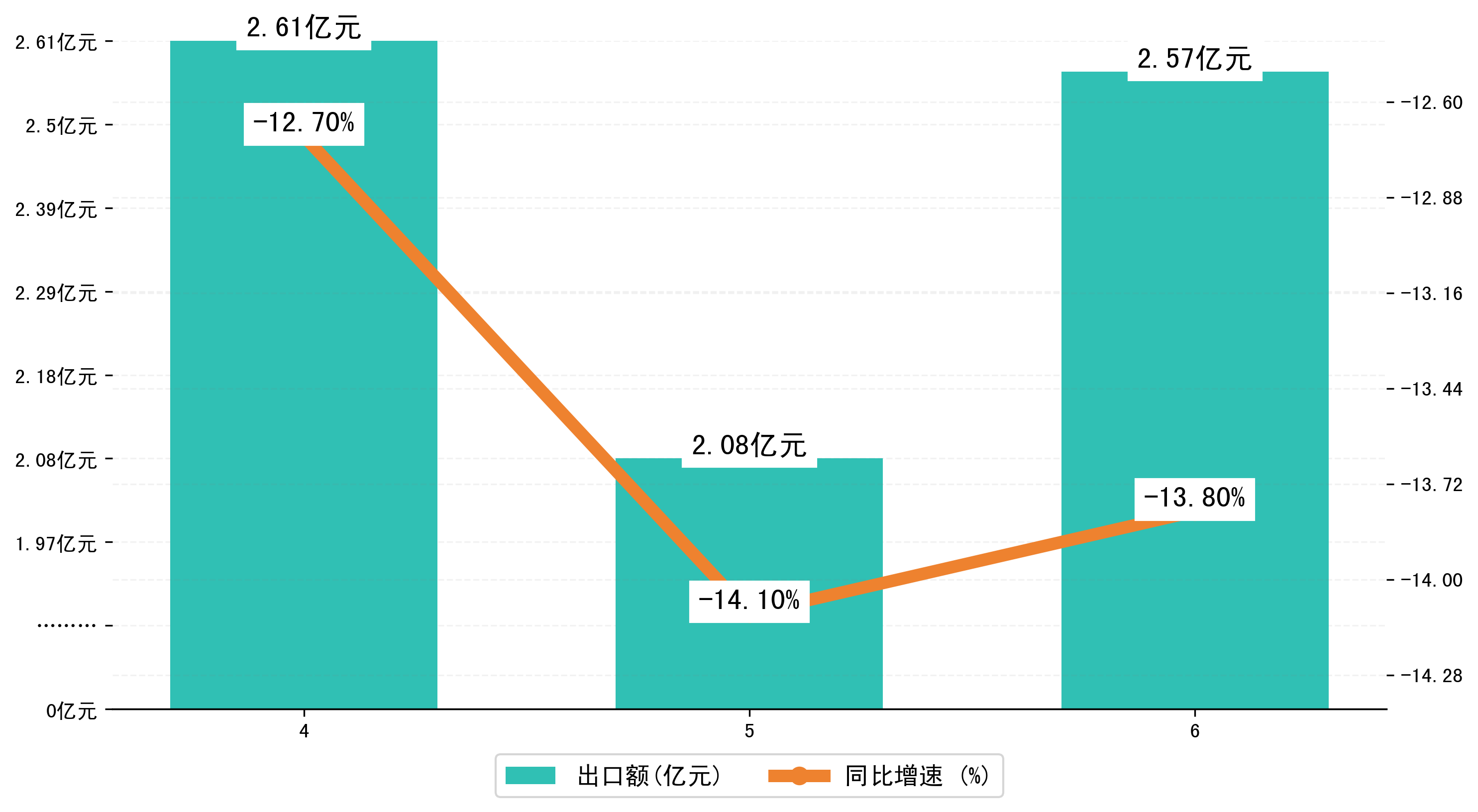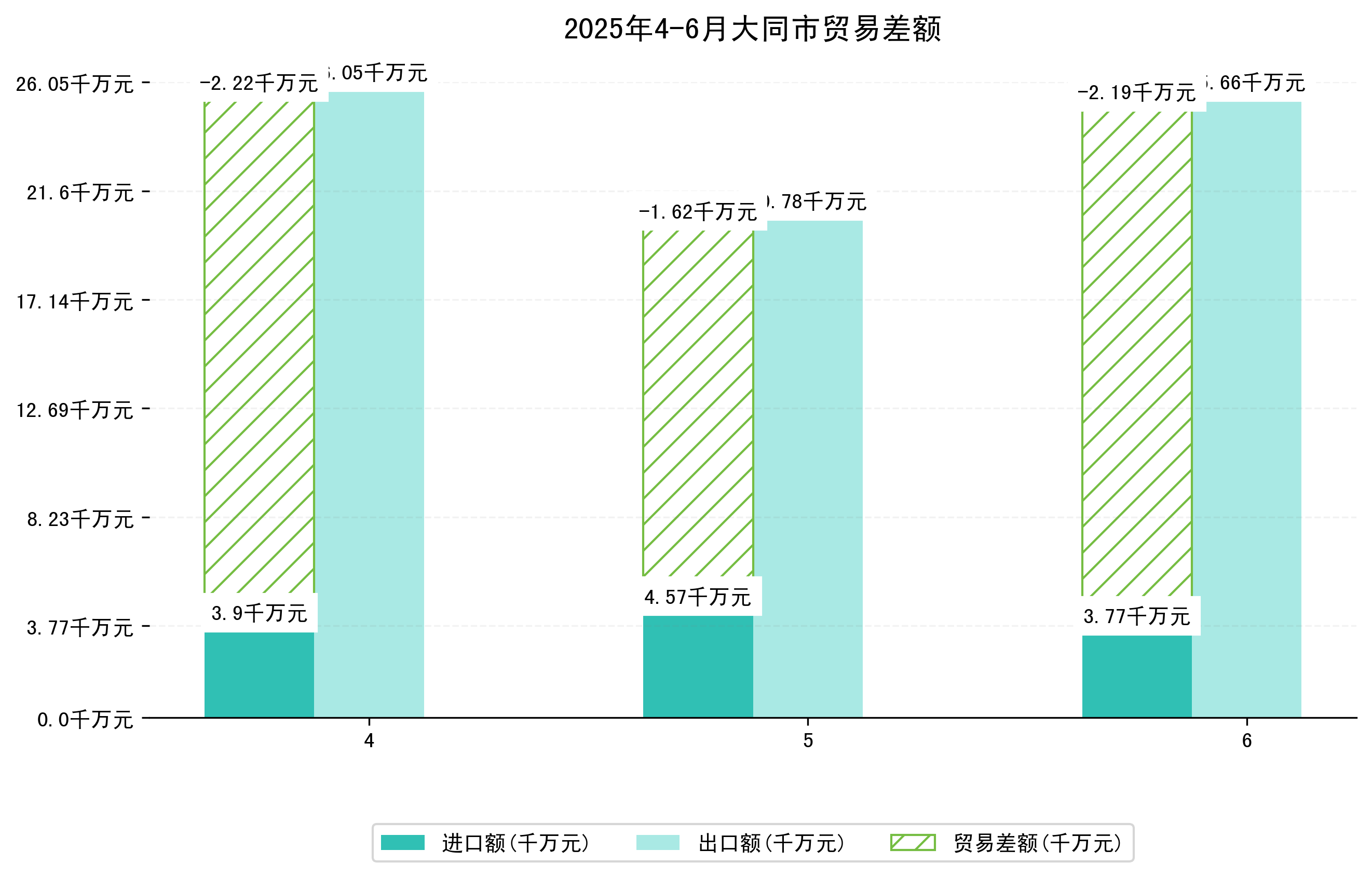 一、2025年6月大同市单月出口总额及进出口差额统计分析