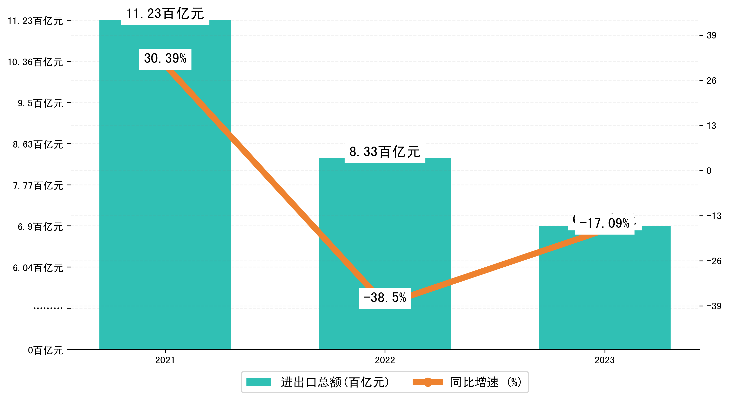 以人民币计,2023年1-7月太原市进出口总额为690,4590.2539万元,相比上年同期减少了142,2829.6051万元,同比减少了-16.10%。