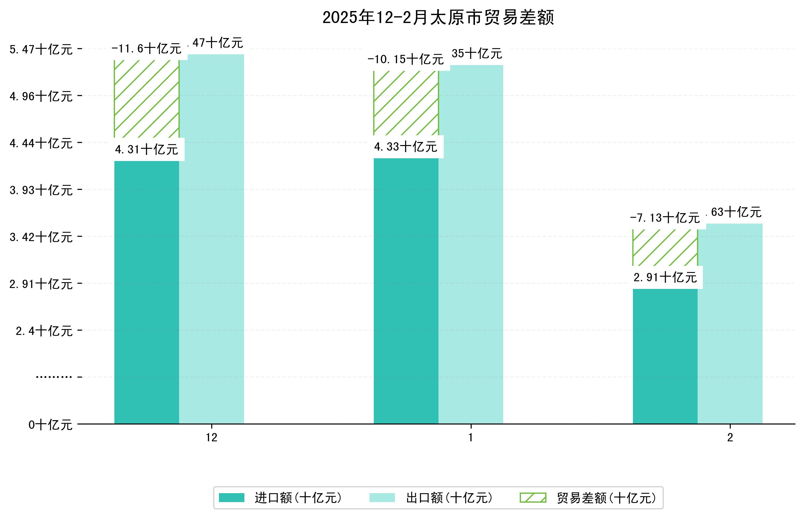 一、2025年2月太原市单月出口总额及进出口差额统计分析