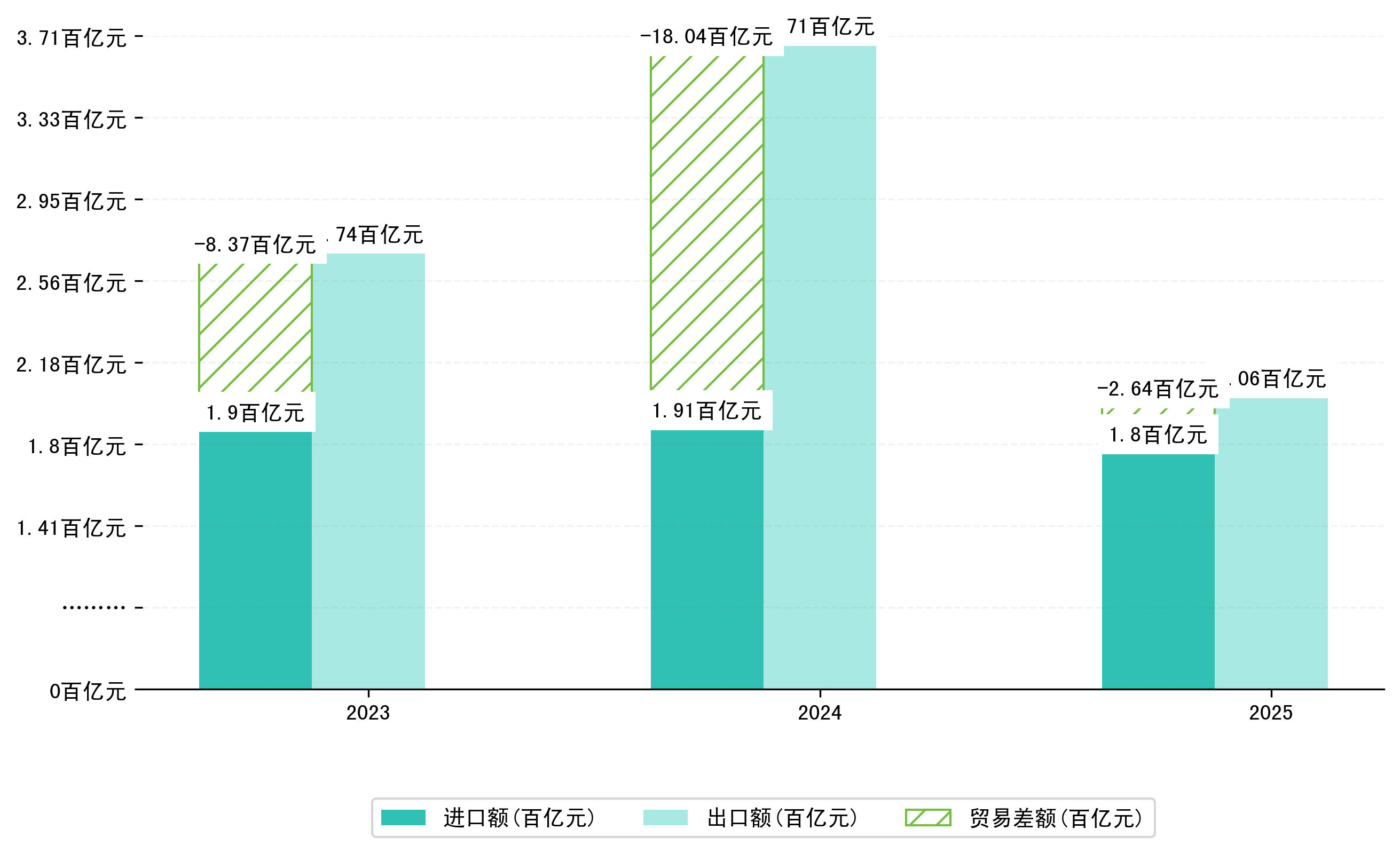 以人民币计,2025年5月太原市贸易差额为2,2206,3099万元(贸易顺差),相比上月增加了1,8234,1928万元,即2457,1986万美元;相比上年同期减少了23,8400,0579万元,同比减少-91.48%。
