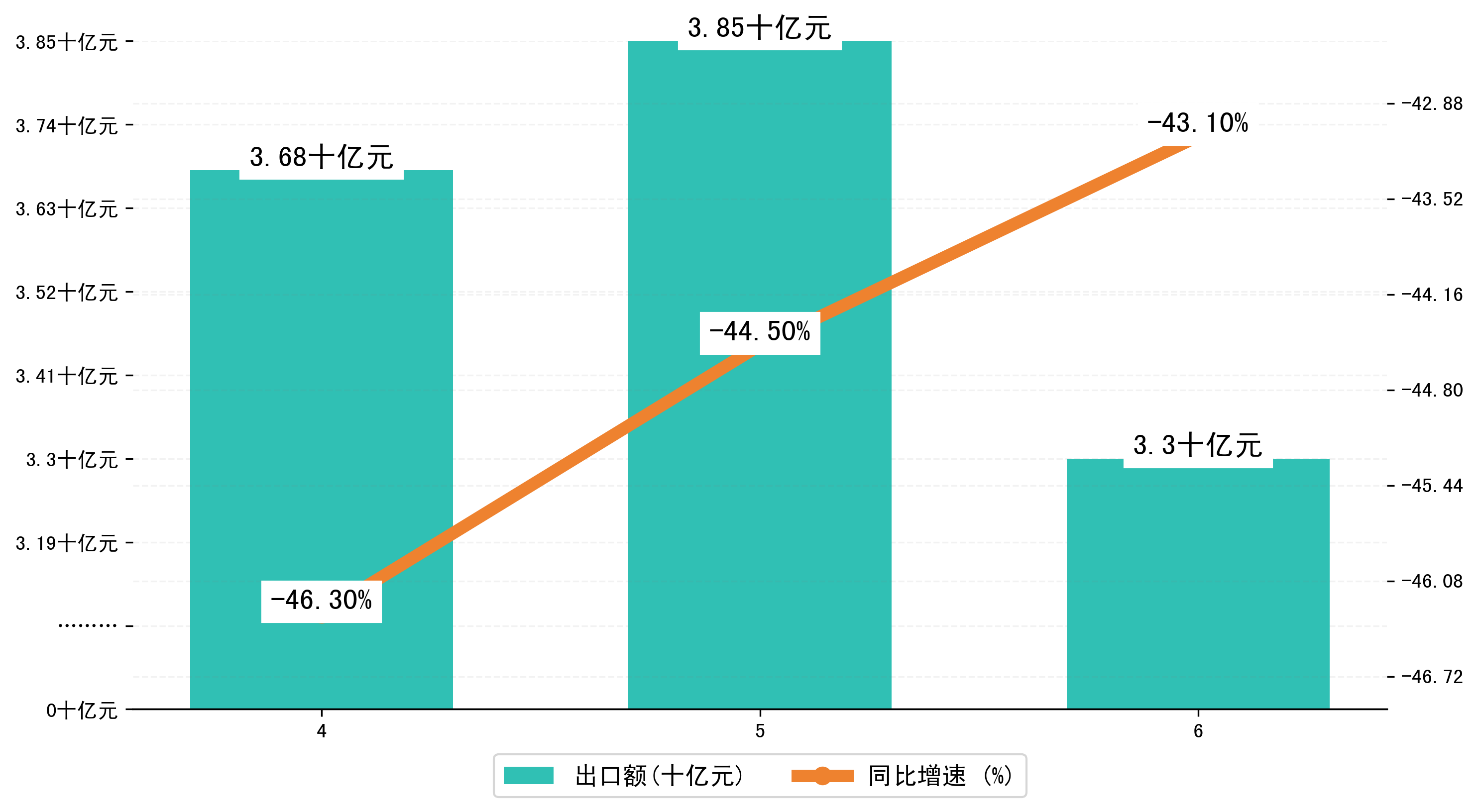以人民币计,2025年6月太原市出口额为33,0114.7252万元,相比上月减少了5,4430.0608万元;相比上年同期减少了16,2139.5185万元,同比减少了-43.10%。