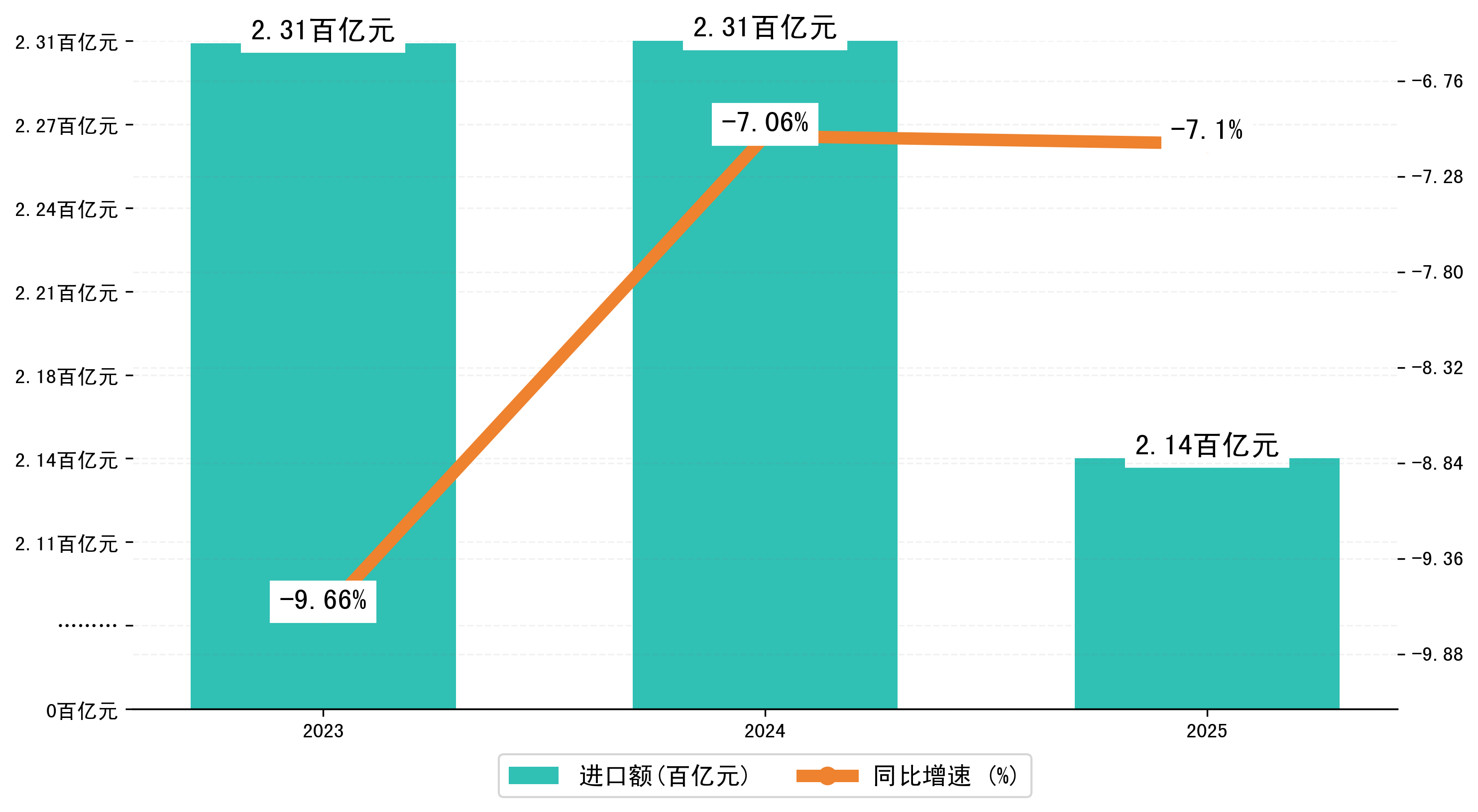 以人民币计,2025年1-6月太原市进口额为214,2941.9375万元,相比上年同期减少了16,3898.1289万元,同比减少了-6.80%。