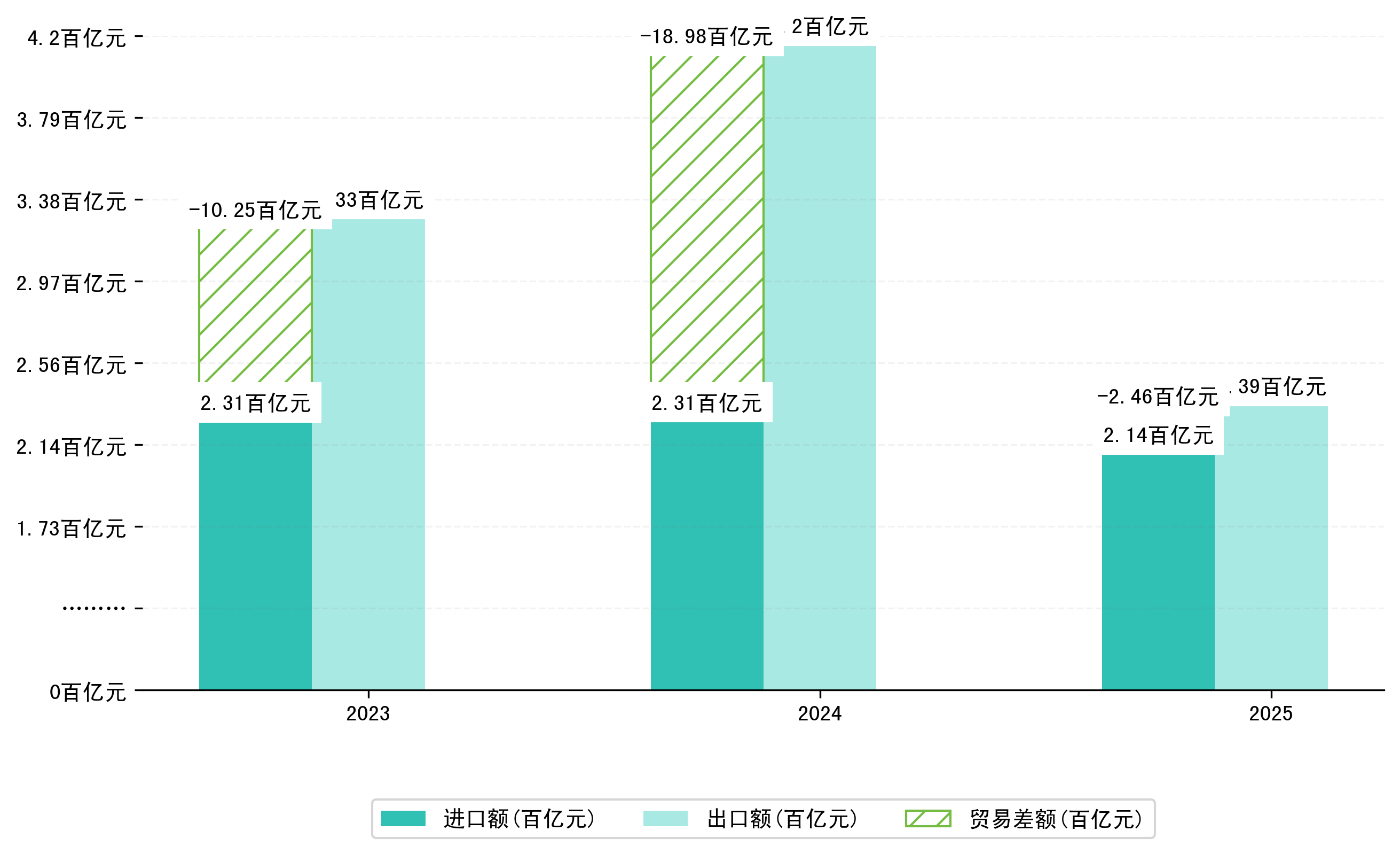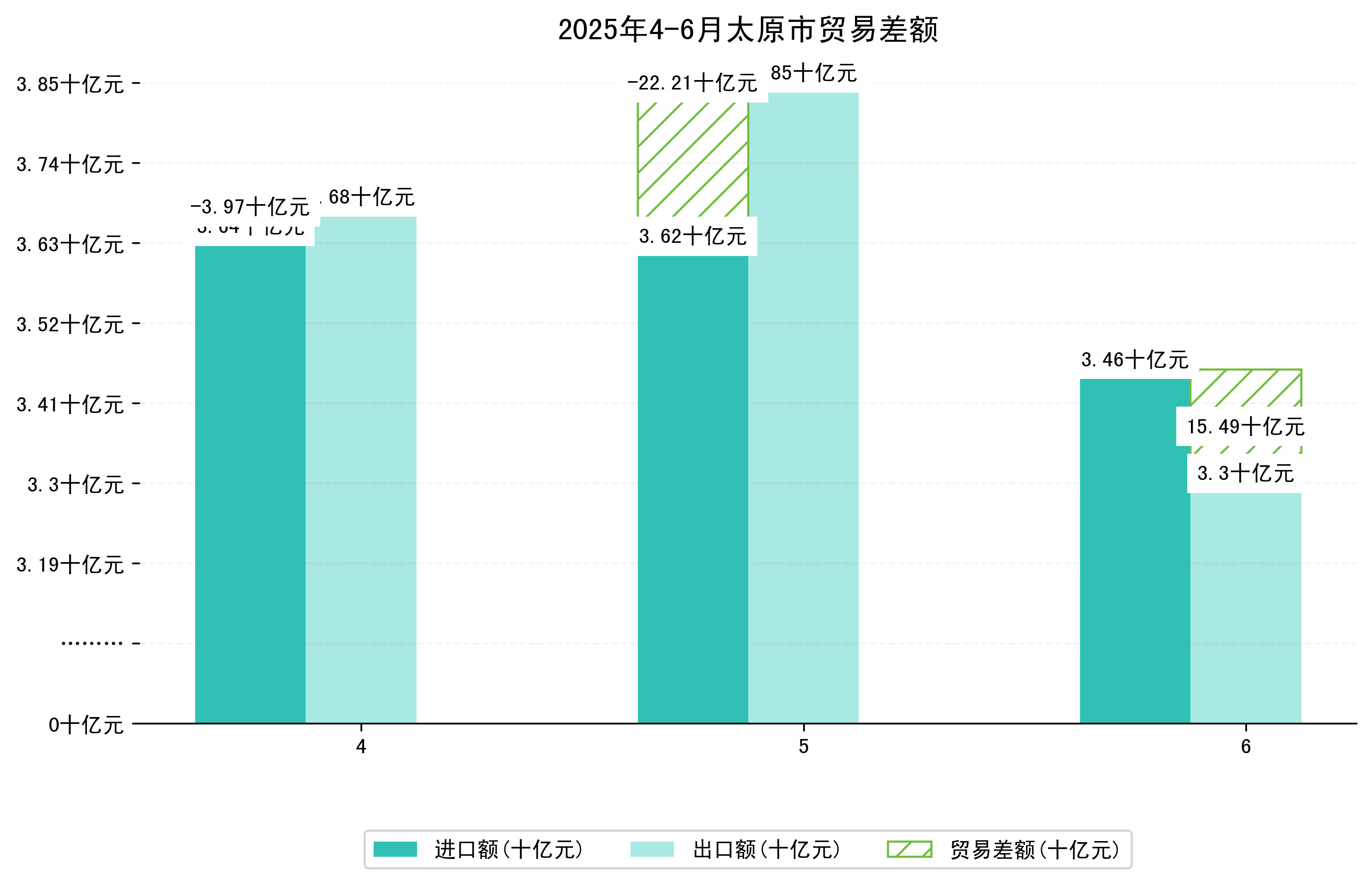 以美元计,2025年6月太原市贸易差额为2152,2776万美元(贸易逆差),相比上月减少了5160,6267万美元;相比上年同期减少了1,5118,4066万美元,同比减少-116.6%。