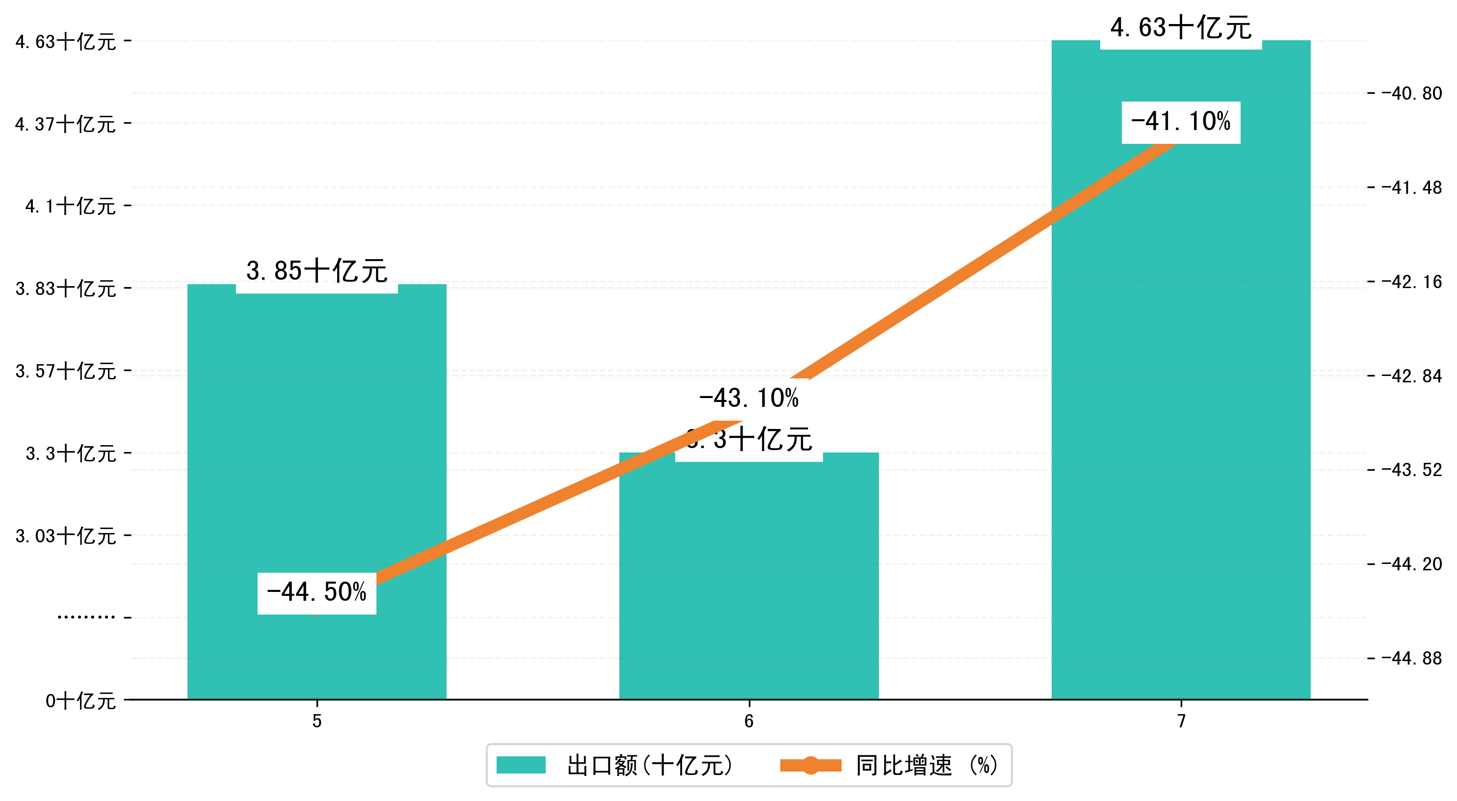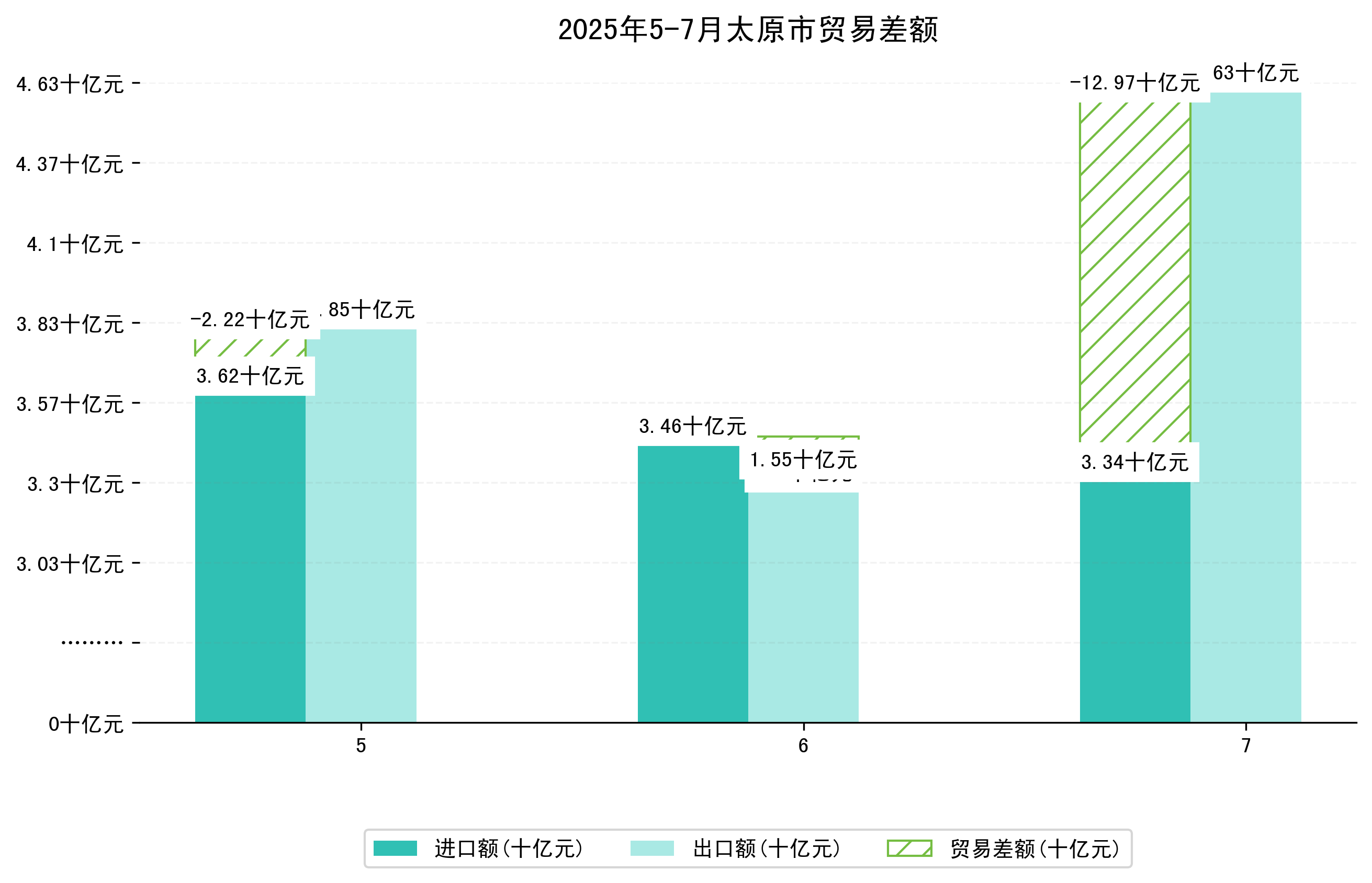 一、2025年7月太原市单月出口总额及进出口差额统计分析