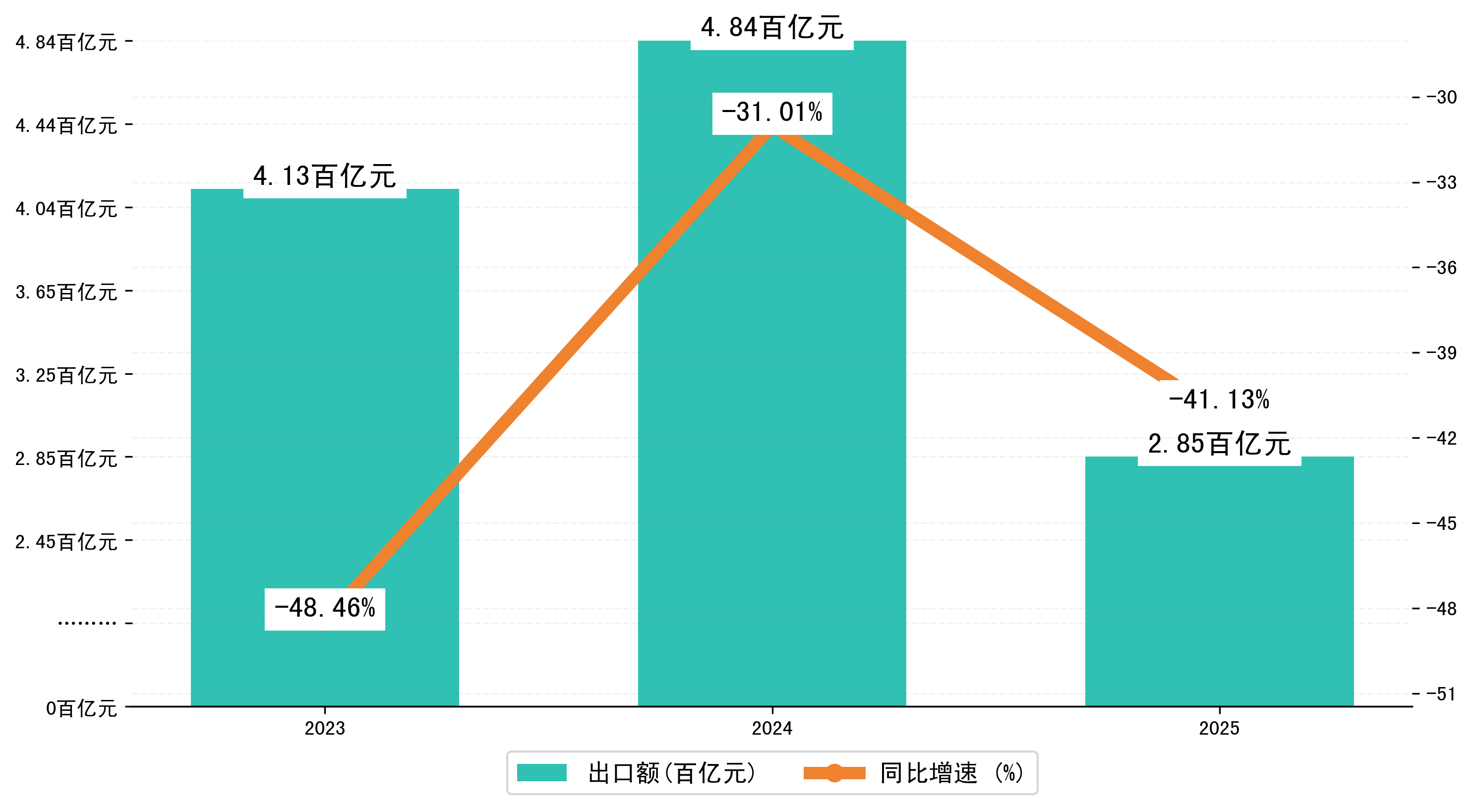 以美元计,2025年1-7月太原市出口额为39,6629.6335万美元,相比上年同期减少了28,4581.448万美元,同比减少-41.70%。