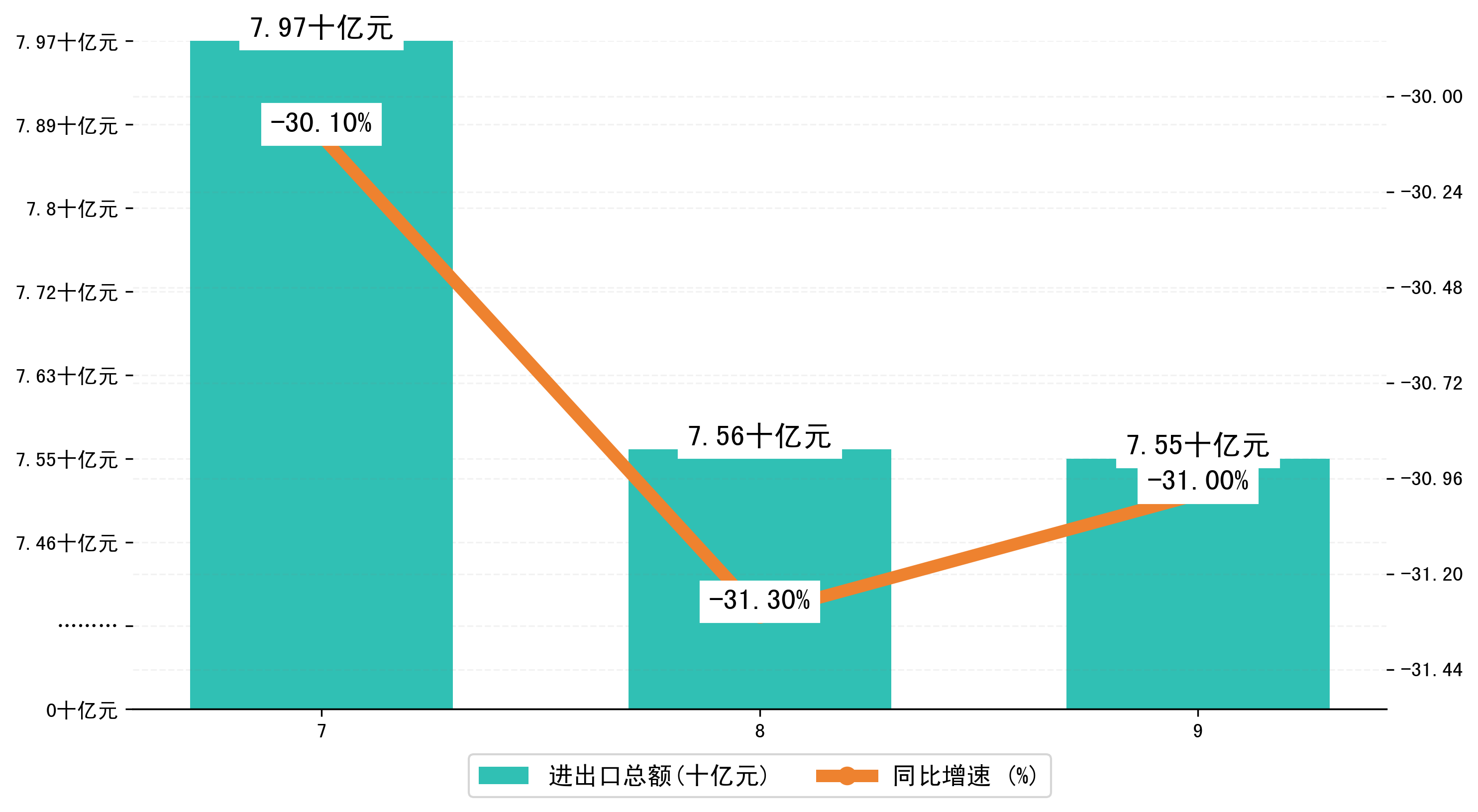 一、2025年9月太原市单月出口总额及进出口差额统计分析
