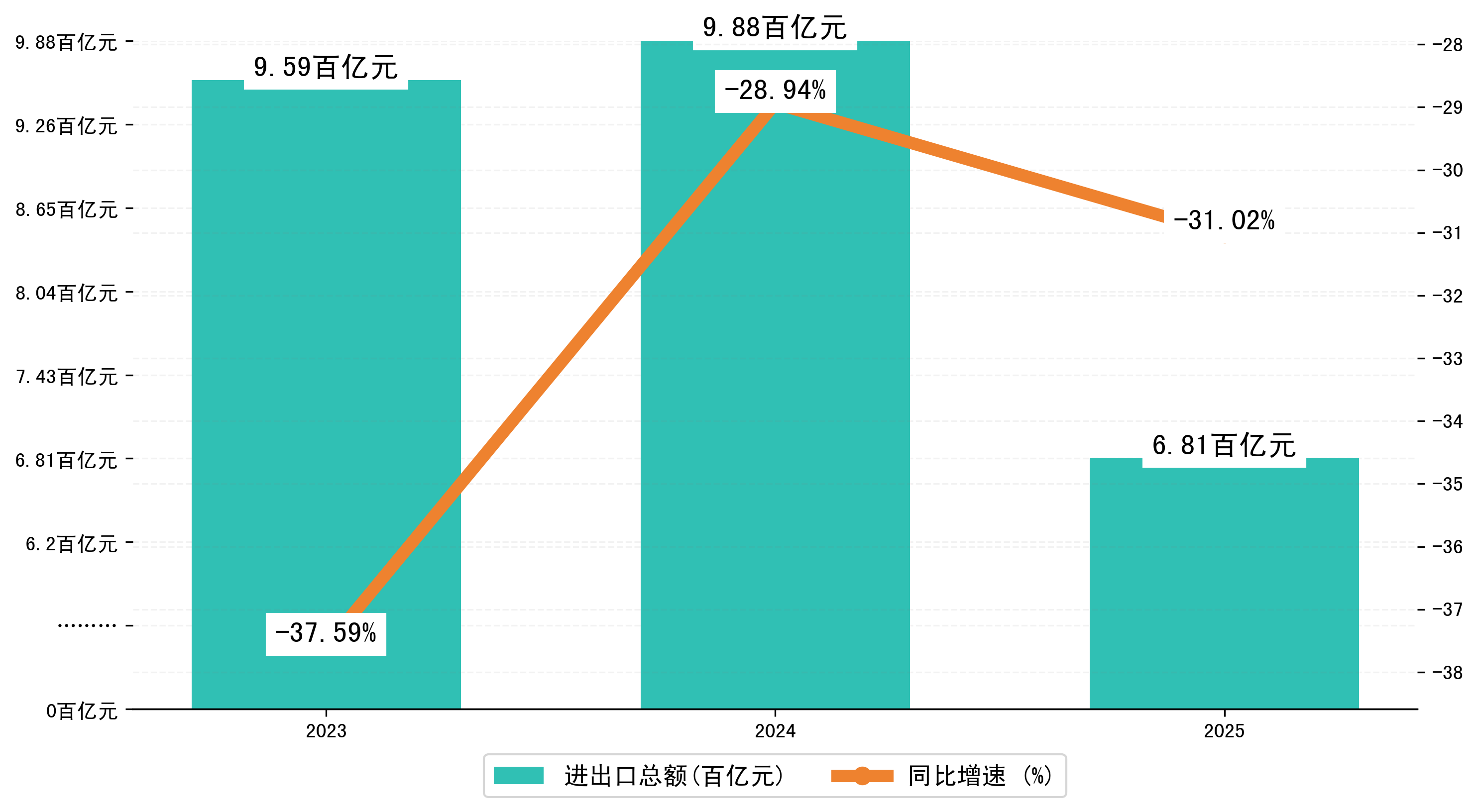 以人民币计,2025年1-9月太原市进出口总额为681,2832.1012万元,相比上年同期减少了306,4253.8831万元,同比减少了-31.00%。