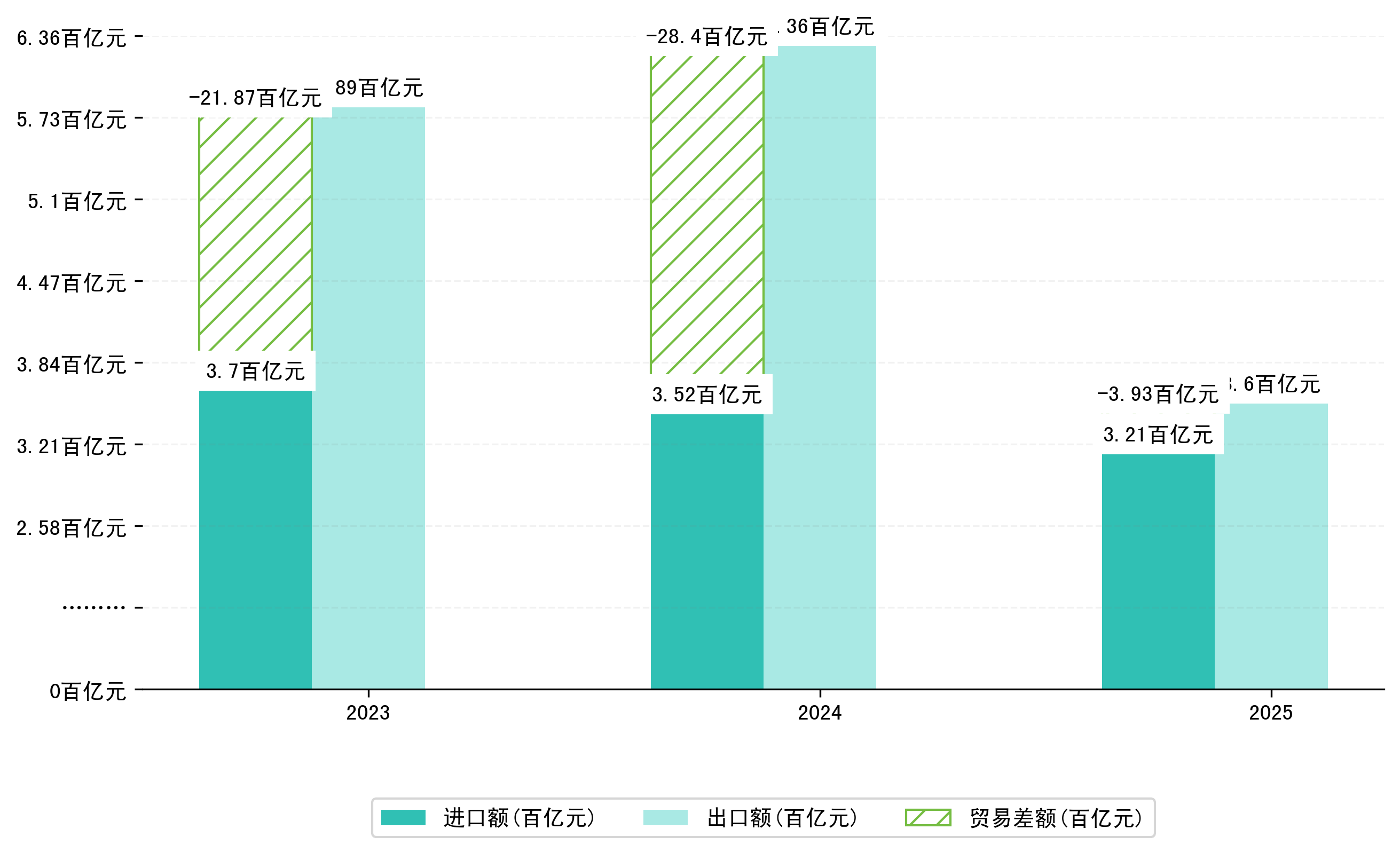 以人民币计,2025年9月太原市贸易差额为2,5745,0693万元(贸易逆差),相比上月减少了5,3311,6070万元,即7422,0215万美元;相比上年同期减少了28,1492,8520万元,同比减少-110.07%。