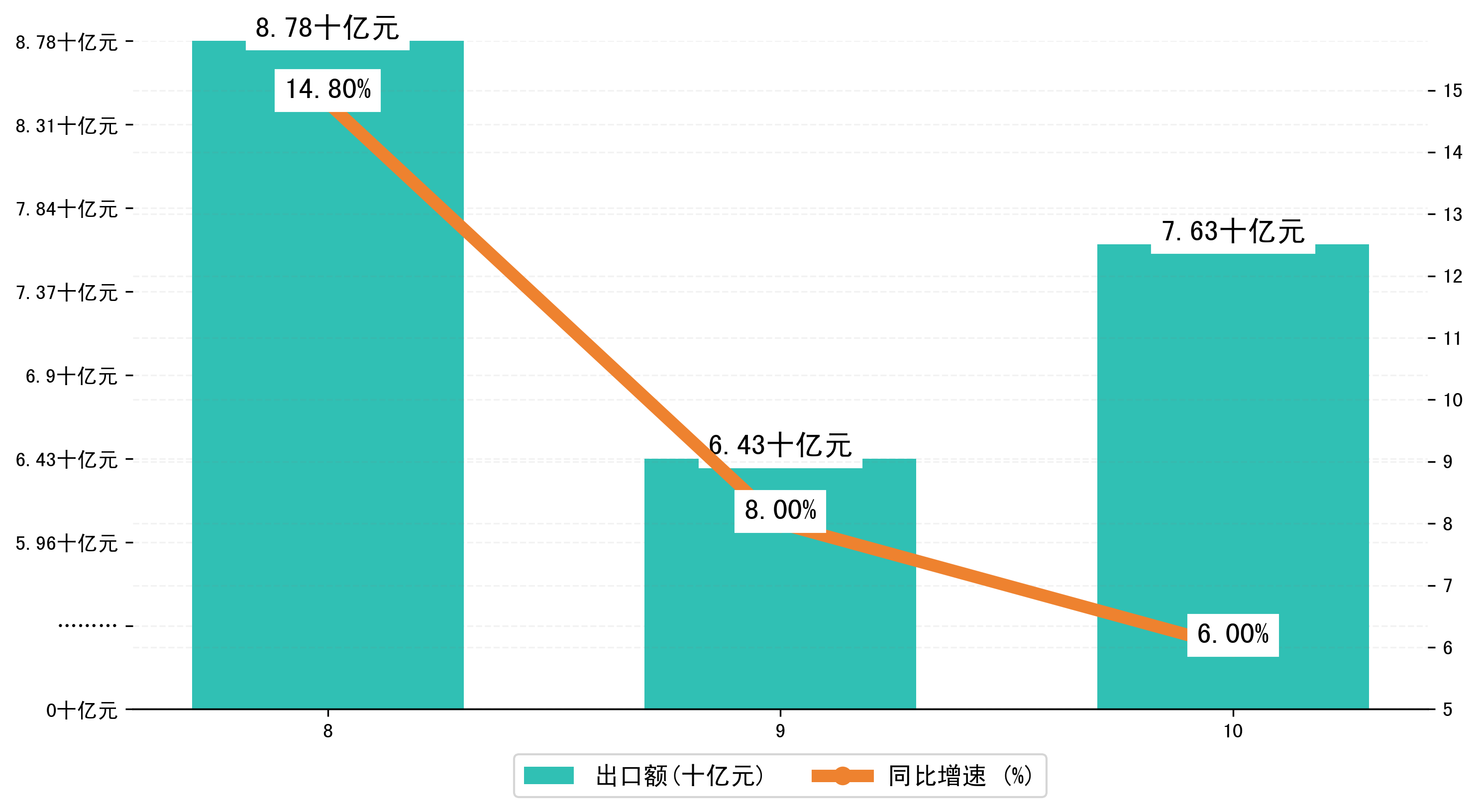 (图二:2024年8-10月太原市出口额)