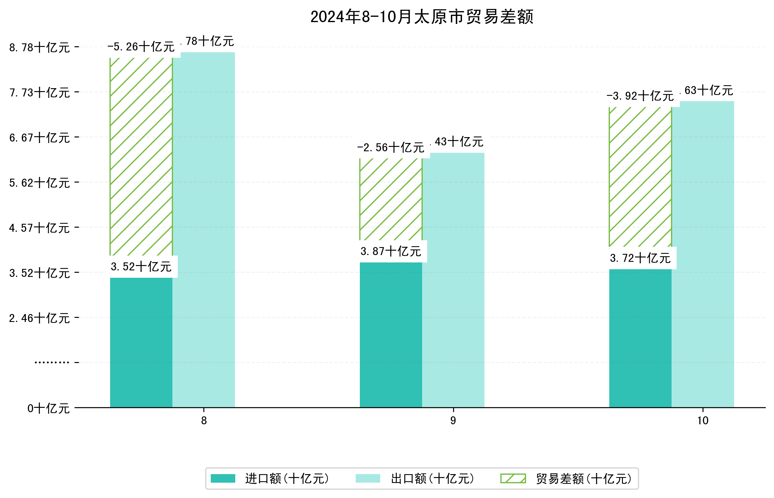 (图四:2024年8-10月太原市贸易差额)