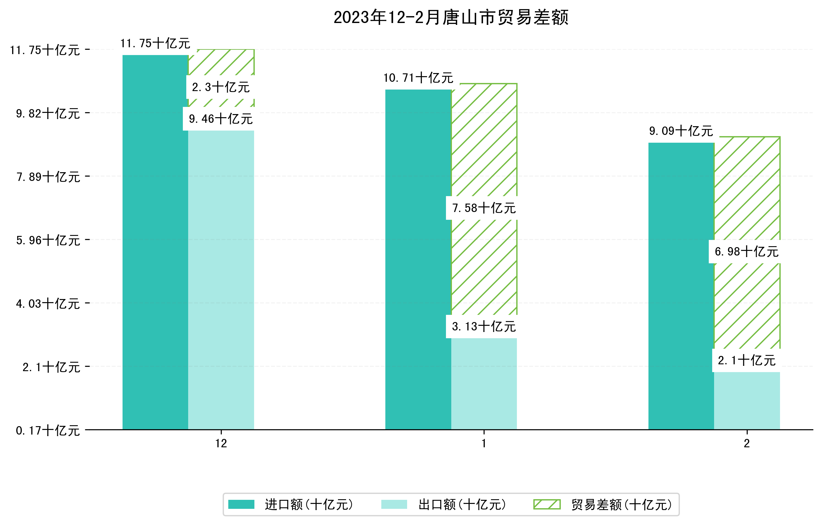 (图一:2023年12-2月唐山市进出口总额)