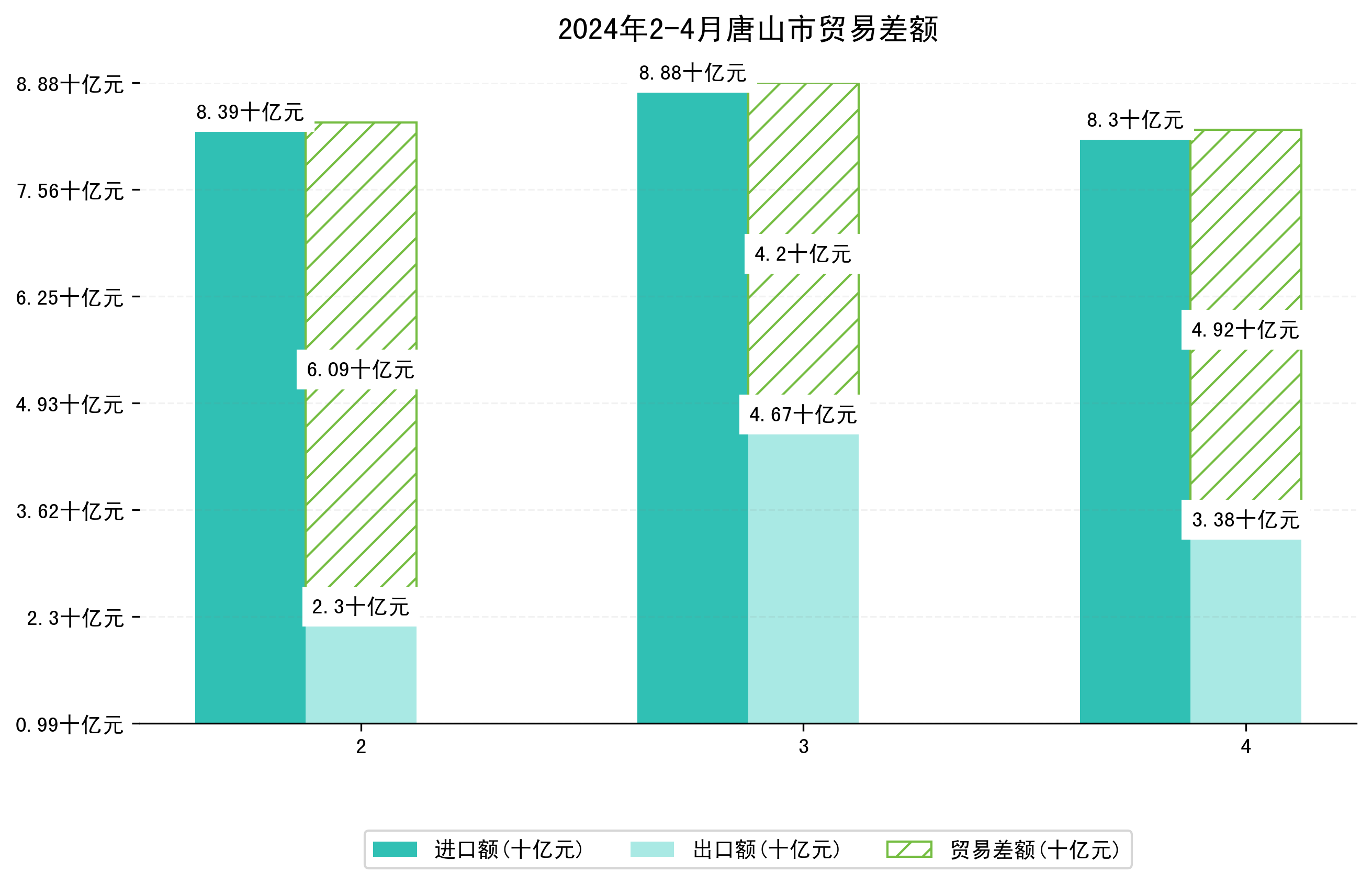 (图一:2024年2-4月唐山市进出口总额)