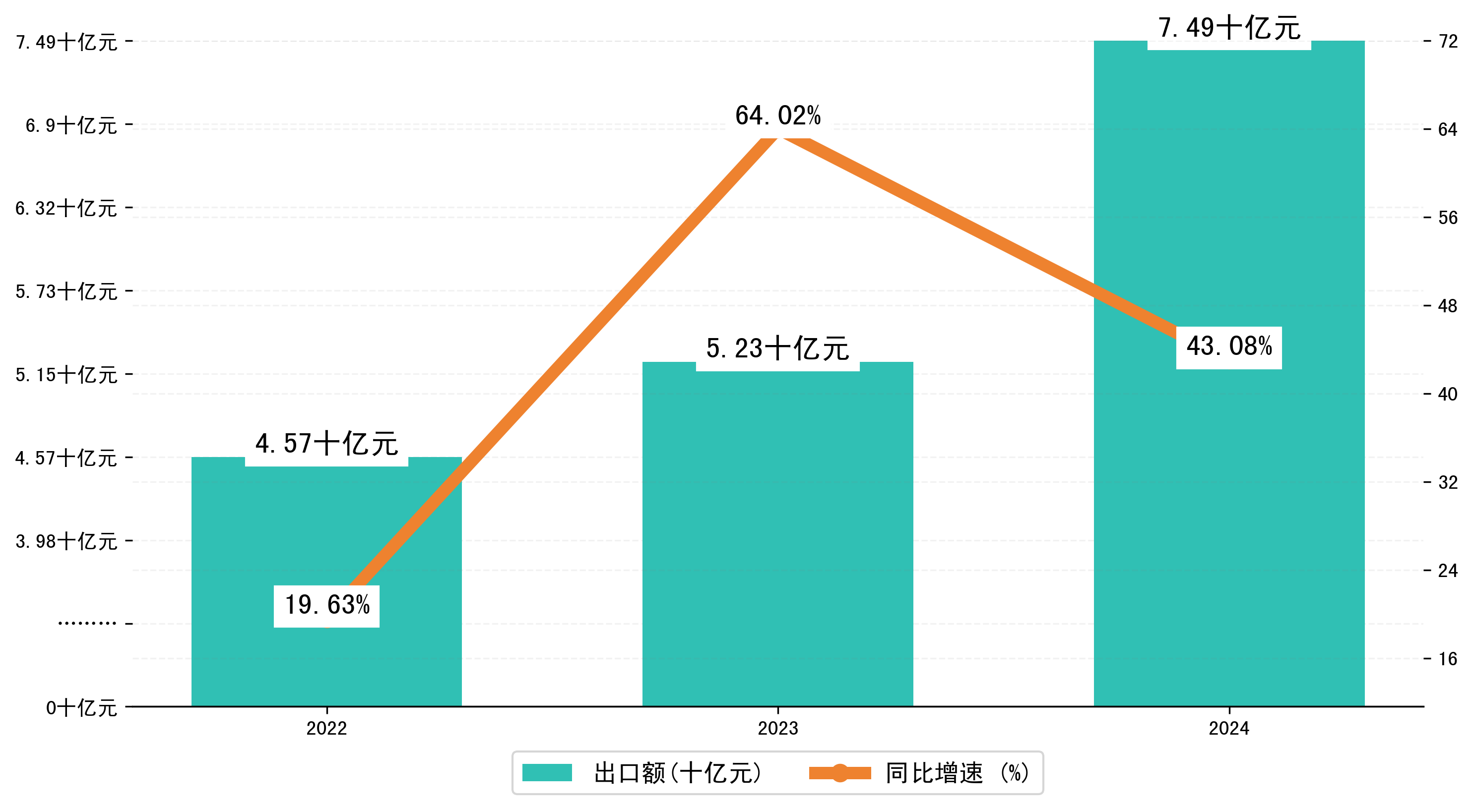 以人民币计,2024年1-2月唐山市出口额为74,8753.3599万元,相比上年同期增加了22,5441.9886万元,同比增加了43.10%。
