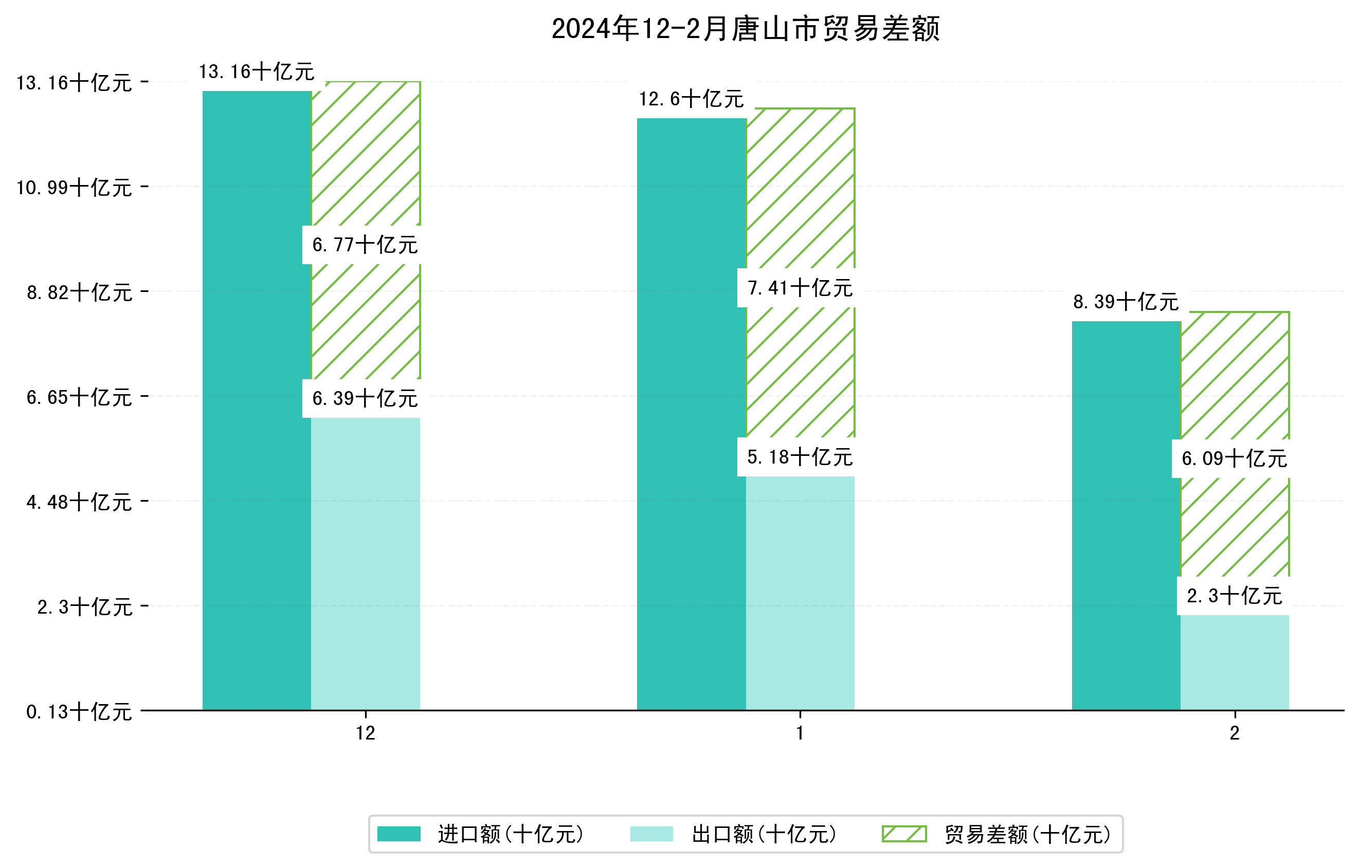 (图一:2024年12-2月唐山市进出口总额)