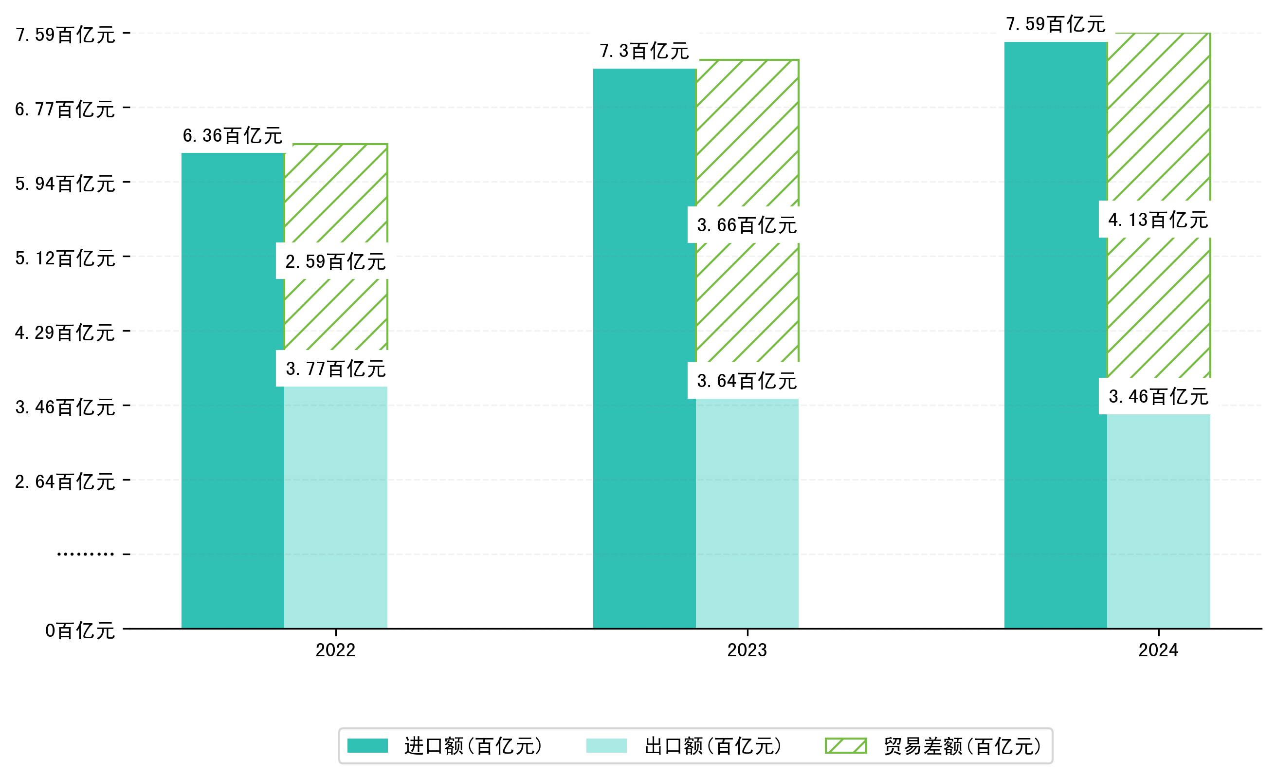 以人民币计,2024年1-9月唐山市进口额为759,3195.4438万元,相比上年同期增加了29,7315.5749万元,同比增加了4.10%。