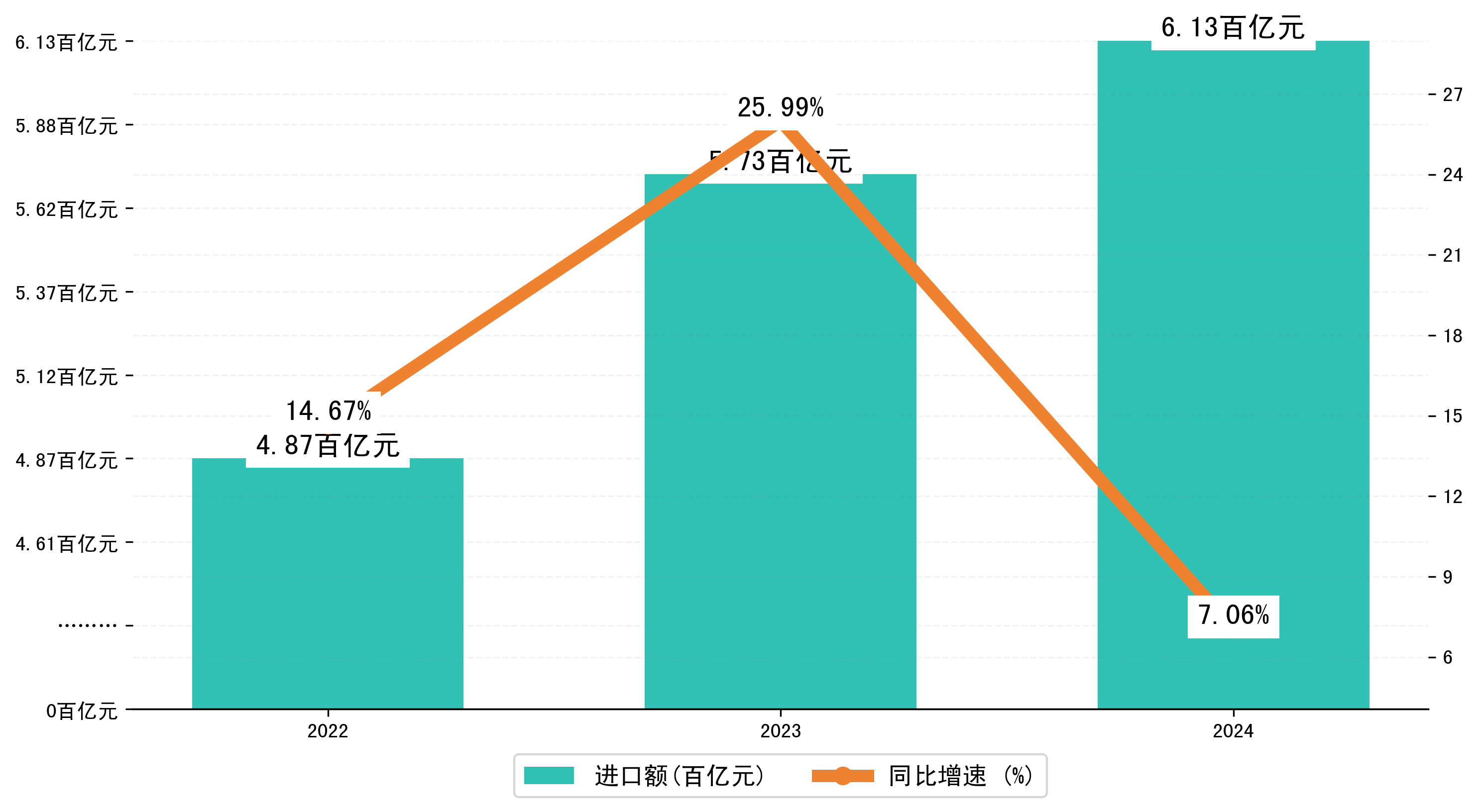 以人民币计,2024年1-7月唐山市进口额为613,0106.0961万元,相比上年同期增加了40,4340.7524万元,同比增加了7.80%。