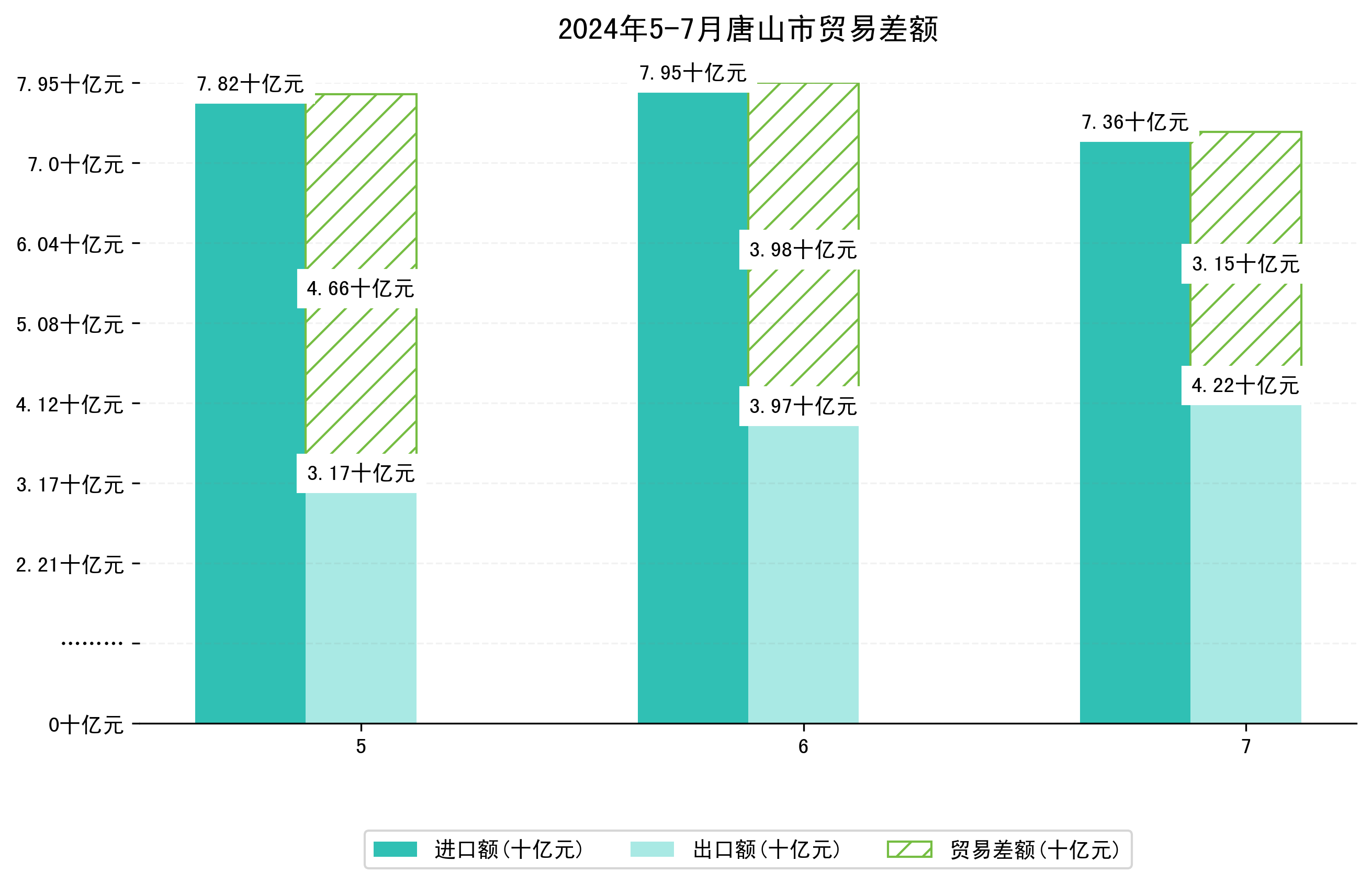 2024年7月唐山市进出口总额及进出口差额统计分析