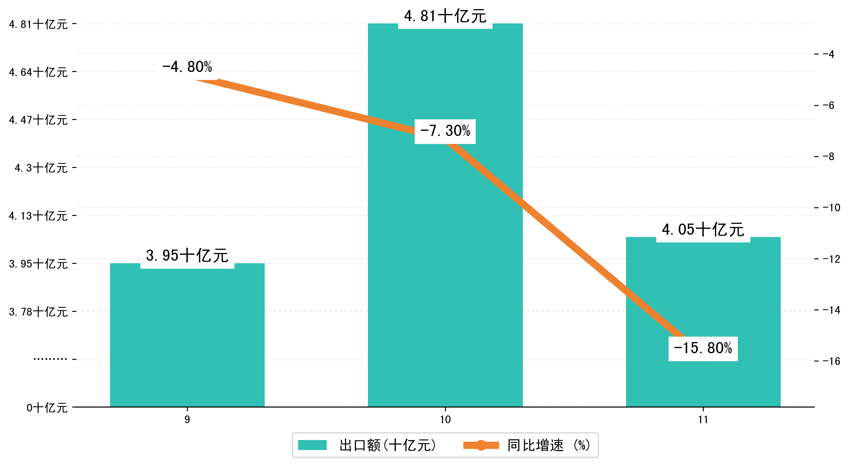 一、2024年11月唐山市单月出口总额及进出口差额统计分析