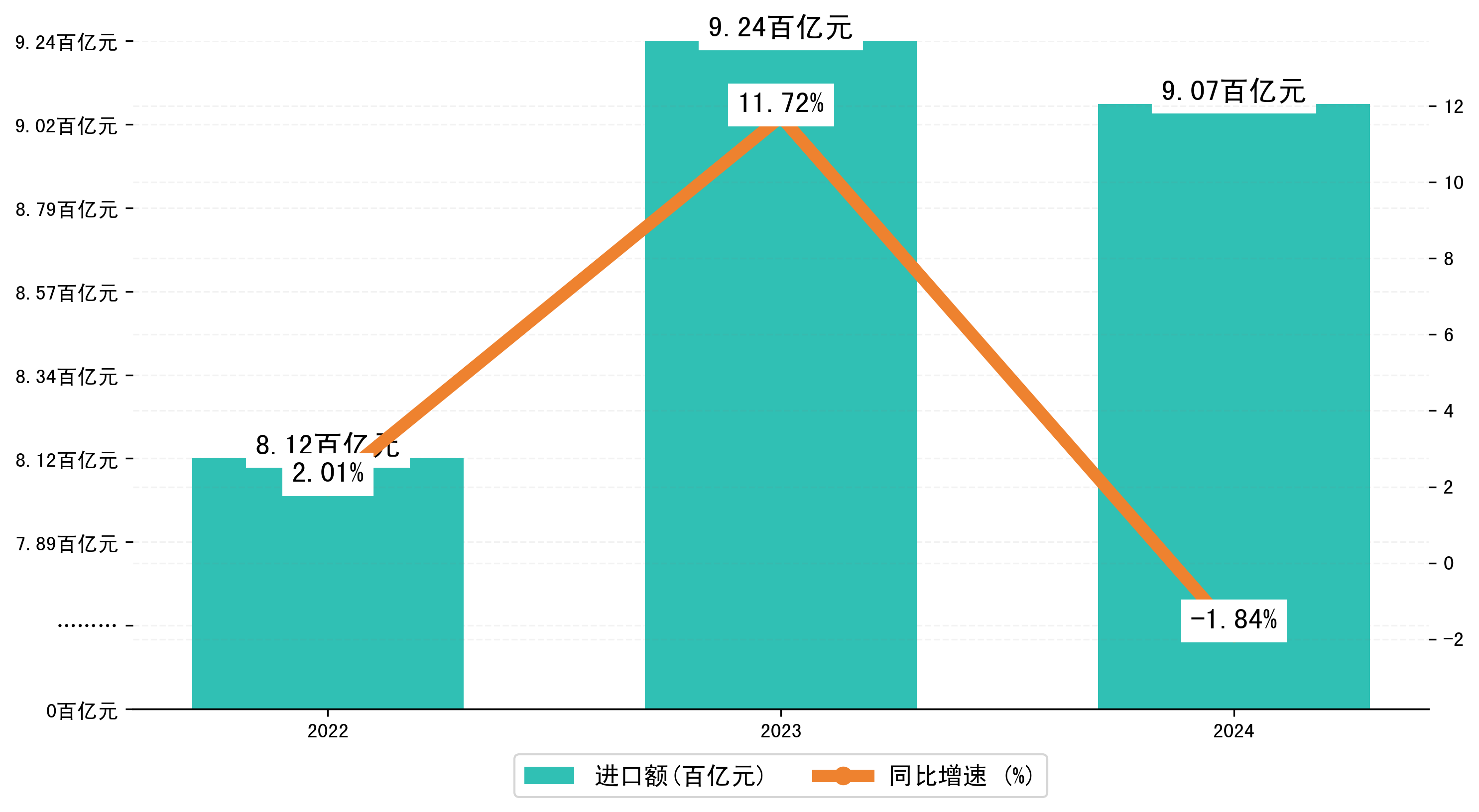 以人民币计,2024年1-11月唐山市进口额为906,9983.7711万元,相比上年同期减少了17,0464.8183万元,同比减少了-2.50%。