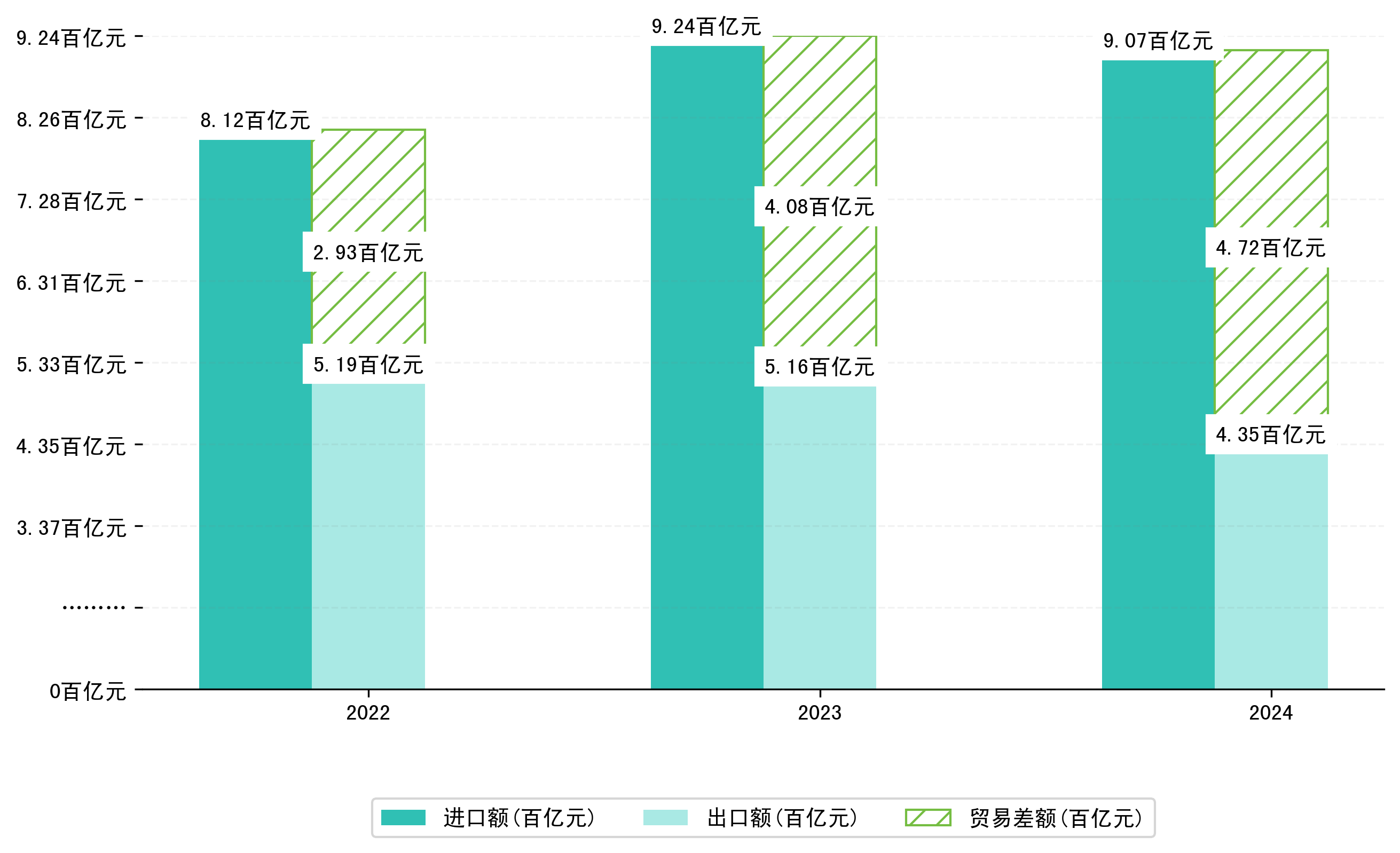 以人民币计,2024年11月唐山市贸易差额为37,4169,6241万元(贸易逆差),相比上月减少了14,3990,9561万元,即2,0006,0023万美元;相比上年同期减少了29,1930,5469万元,同比减少354.98%。