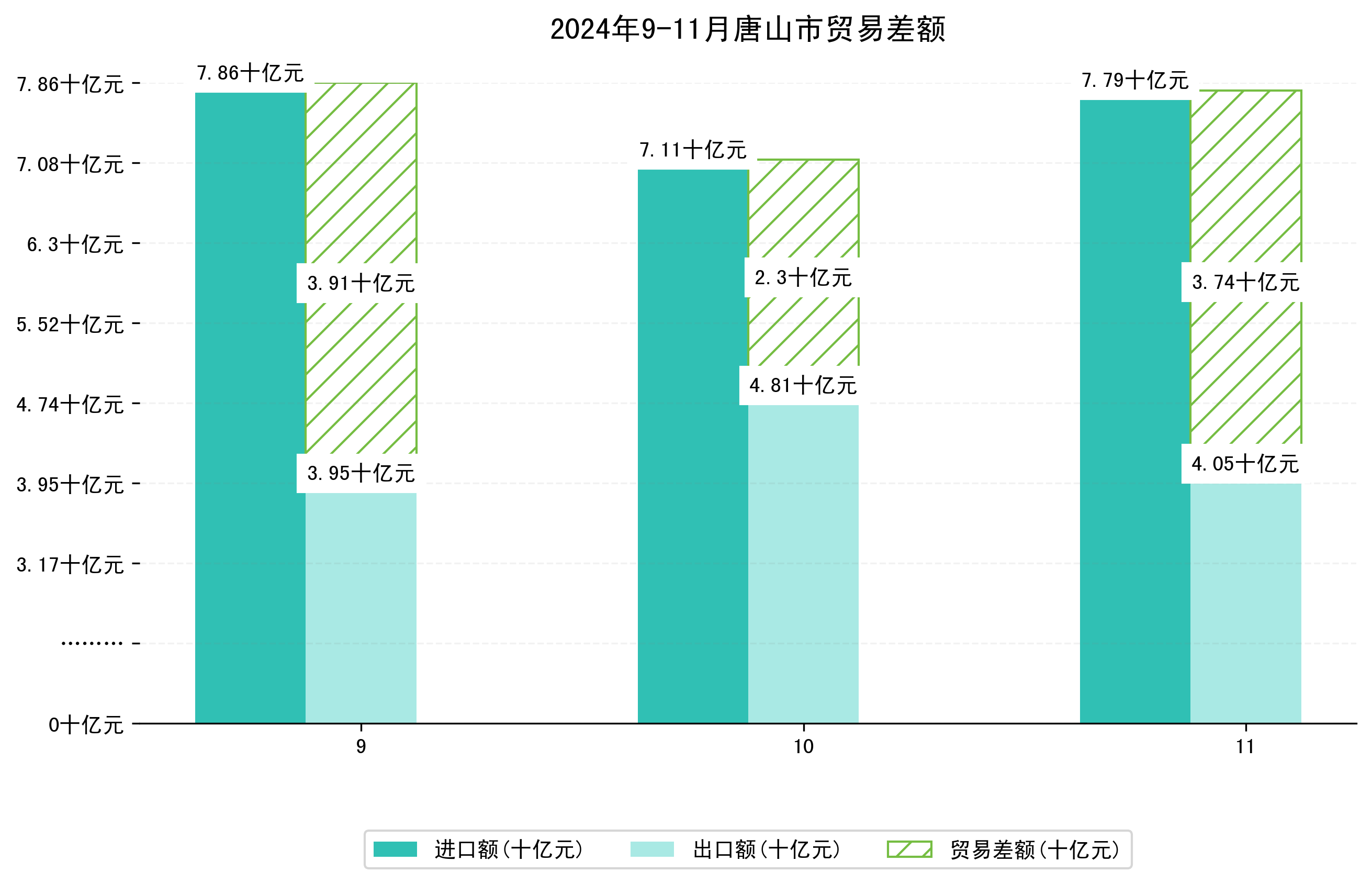 2024年11月唐山市进出口总额及进出口差额统计分析
