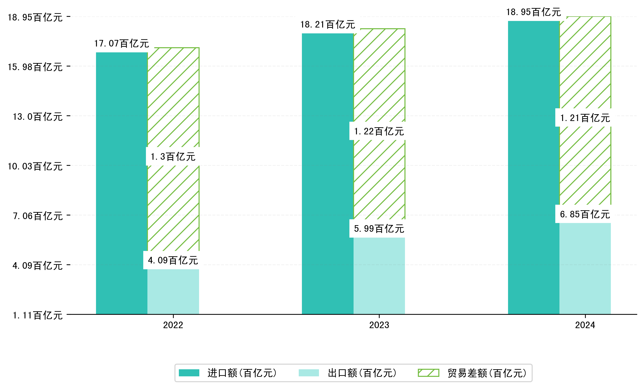 以人民币计,2024年1-10月黑龙江省贸易差额为1209,6549,6084万元(贸易逆差),相比上年同期增加了12,6396,9005万元,同比增加-1.03%。