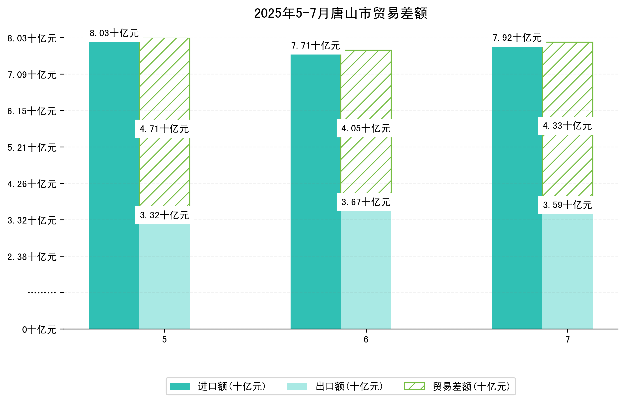 (图一:2025年5-7月唐山市进出口总额)