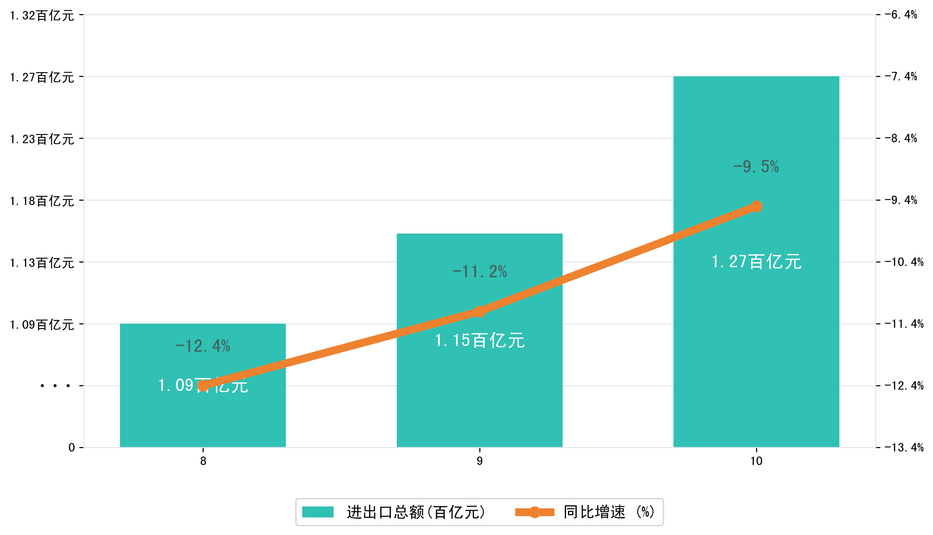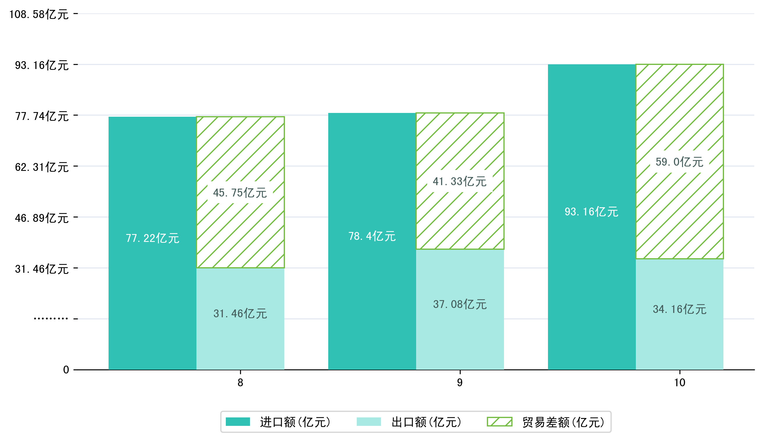 (图一:2025年8-10月唐山市进出口总额)