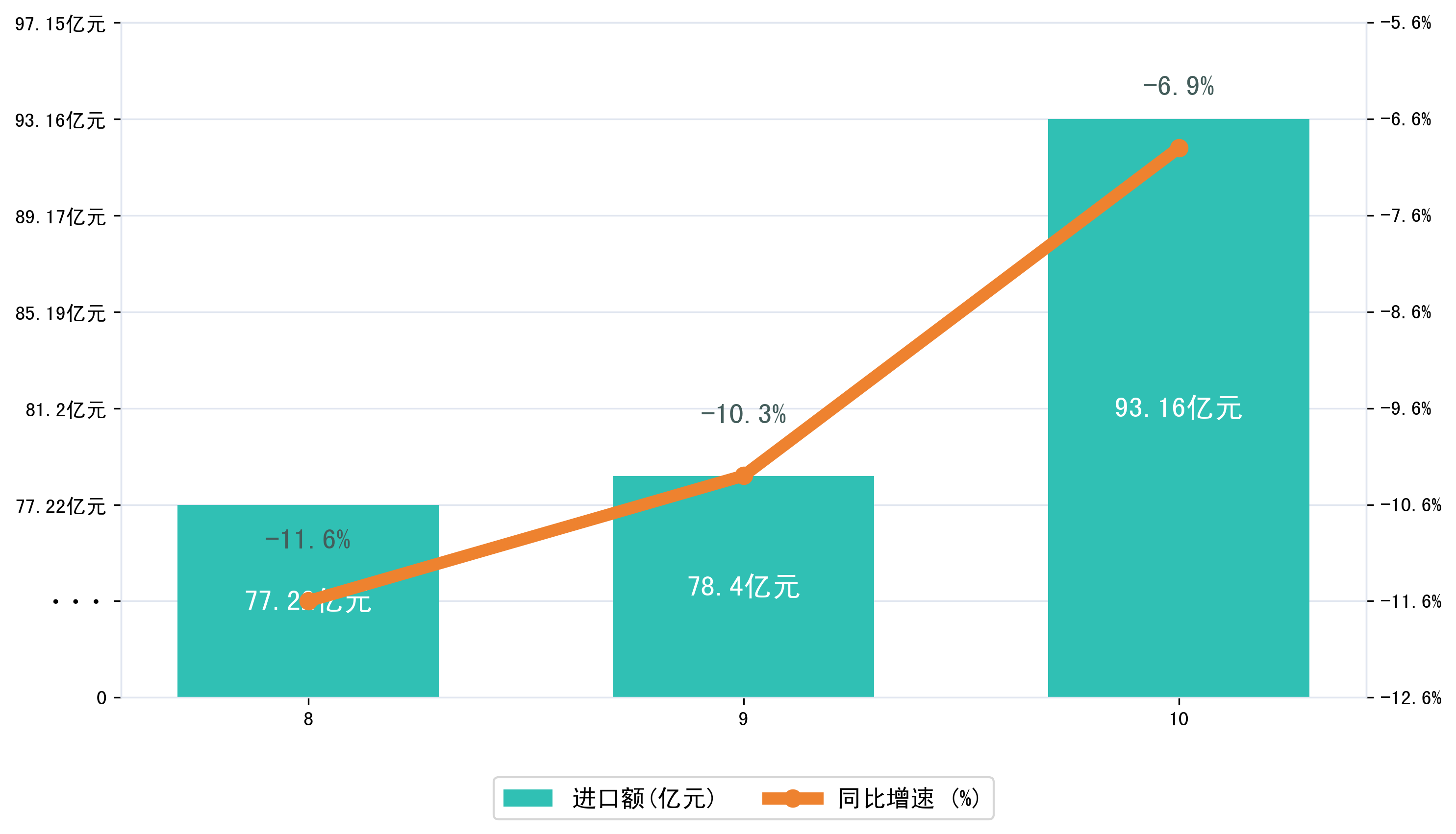 (图三:2025年8-10月唐山市进口额)